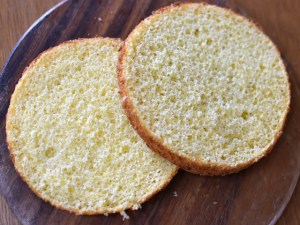 1.スポンジが冷めたら真ん中から横に半分に切る。