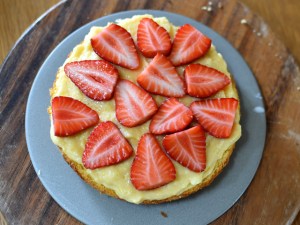 定番の夏至祭ケーキ。手元のレシピは20人分だったので、作りやすい4人分のサイズに変えました。また伝統的なエッグクリームは分量を減らすのが難しかったのでカスタードに置き換えました。