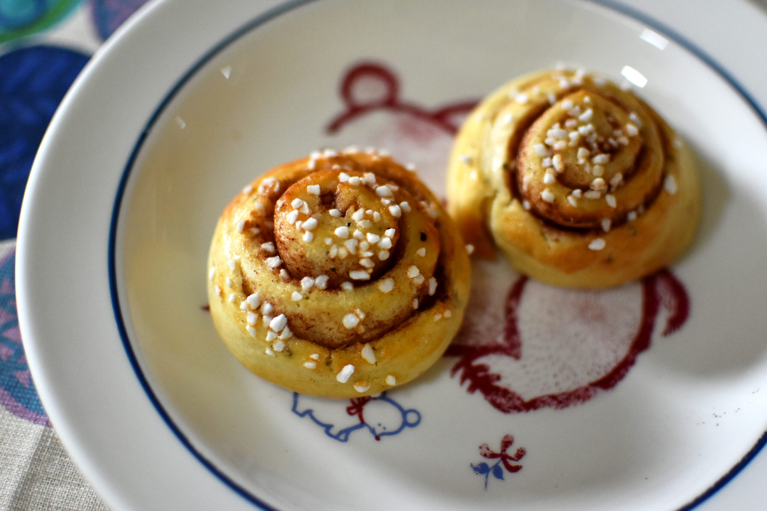 あるいはグラニュー糖やスライスアーモンドでもいいし、もうなんだったら何もかけなくてもいいです。カルダモンさえ入っていれば北欧のシナモンロールと思って、そこらへんは気楽にどうぞ。