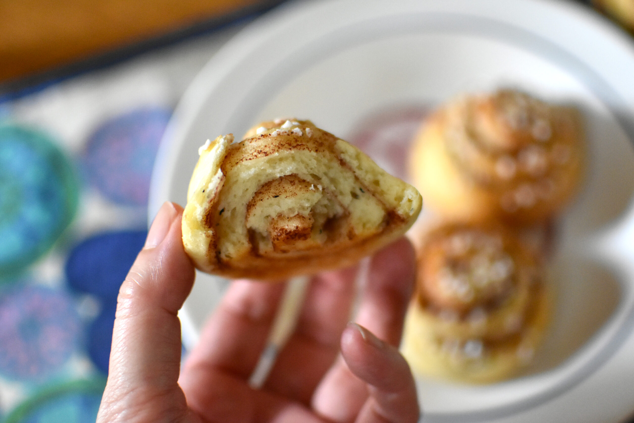 食感はイーストを使ったシナモンロールよりもややケーキより。でも言われてみないとパンとしか思えない出来上がりです。それに北欧のシナモンロールはパンというよりお菓子のポジションなので、全然問題なし。これなら気軽に作っていただけるんじゃないかしら。