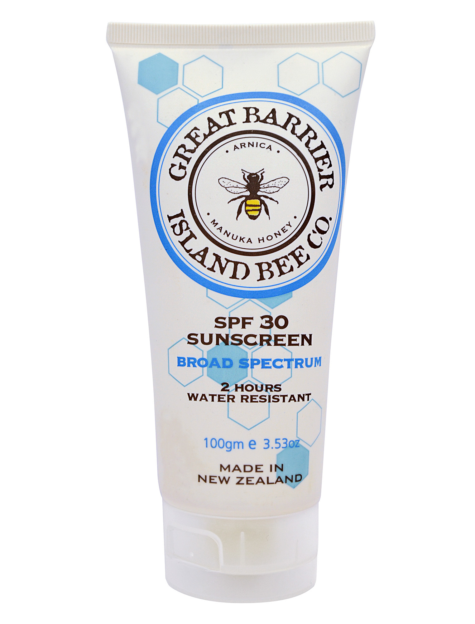 GREAT BARRIER ISLAND BEE CO. の日焼け止めは、汗や水に強いウォータープルーフ仕様。顔や体に使えて、約2時間効果が長続きしてくれます。持ち運びしやすいチューブタイプなので、サッと塗りなおせますよ。バッグに1本入れておくと安心ですね。