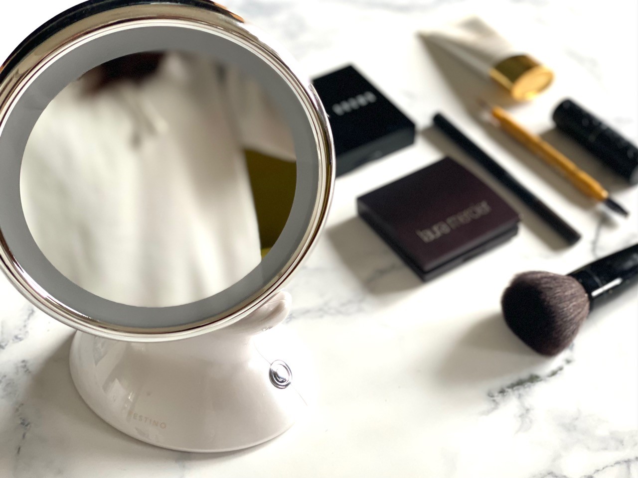 また化粧は明るい場所でしたほうがいいと言われますが、こちらはスタンド式でどこでも使えるため、最近は自然光の下で化粧をするのがマイブーム。