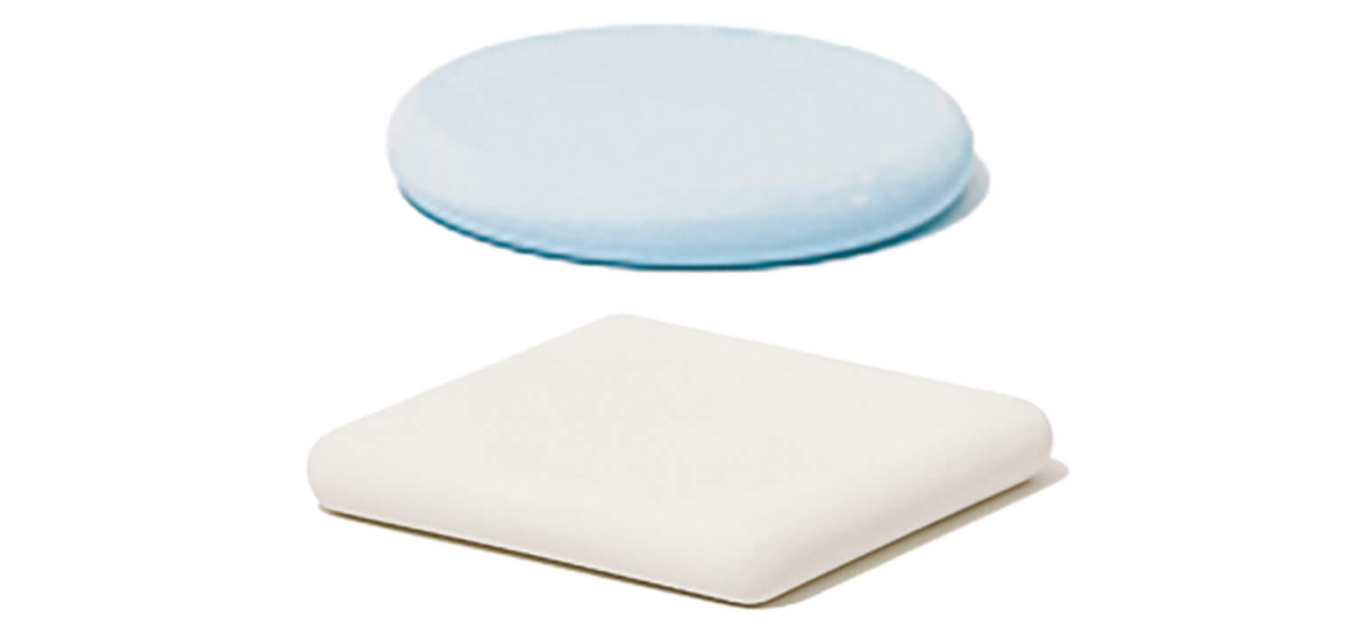 サイズは縦300㎜×横500㎜×高さ25㎜で、天然素材の色味を活かしたホワイトとブルーの2色展開。