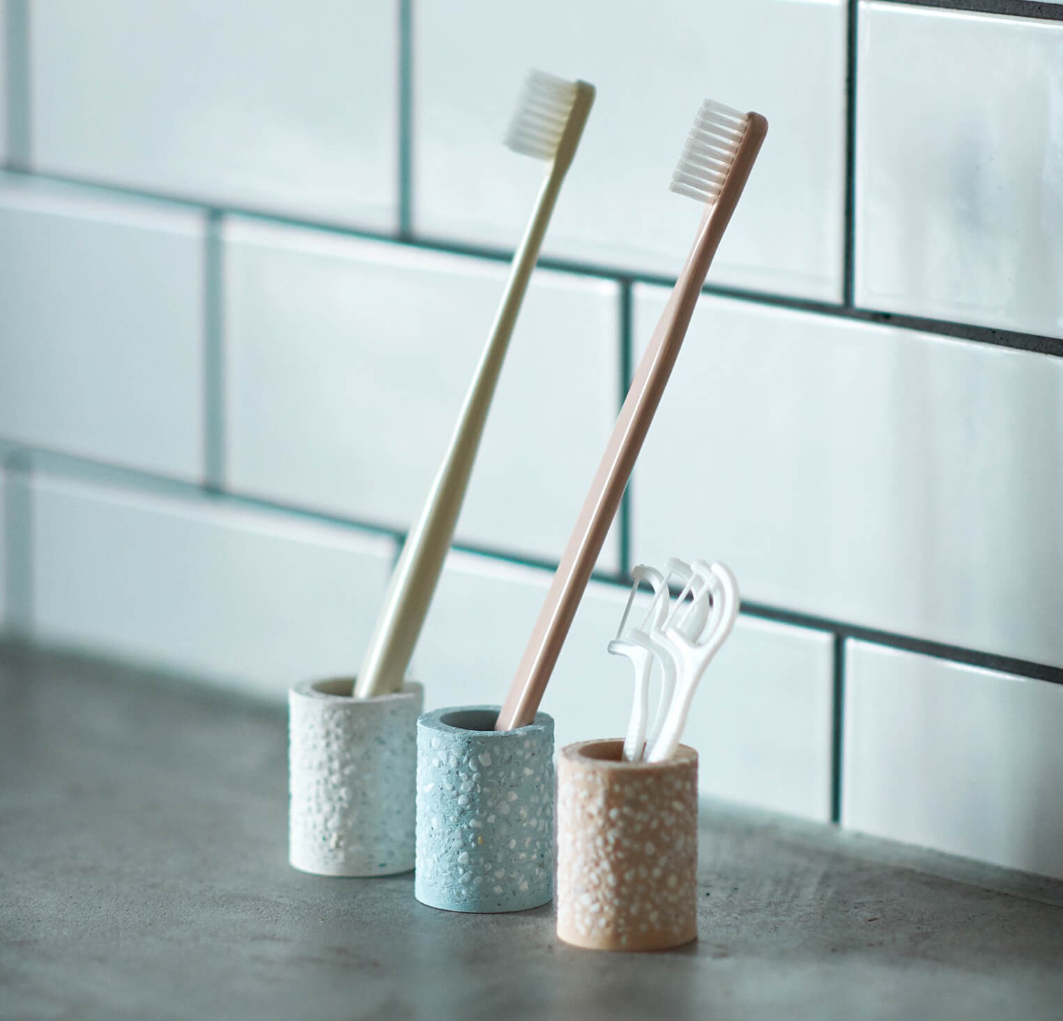 歯ブラシの水気を吸水し、洗面まわりを清潔に保つ1本用歯ブラシスタンド。小石+珪藻土のデザインがどこか懐かしい風合いです。