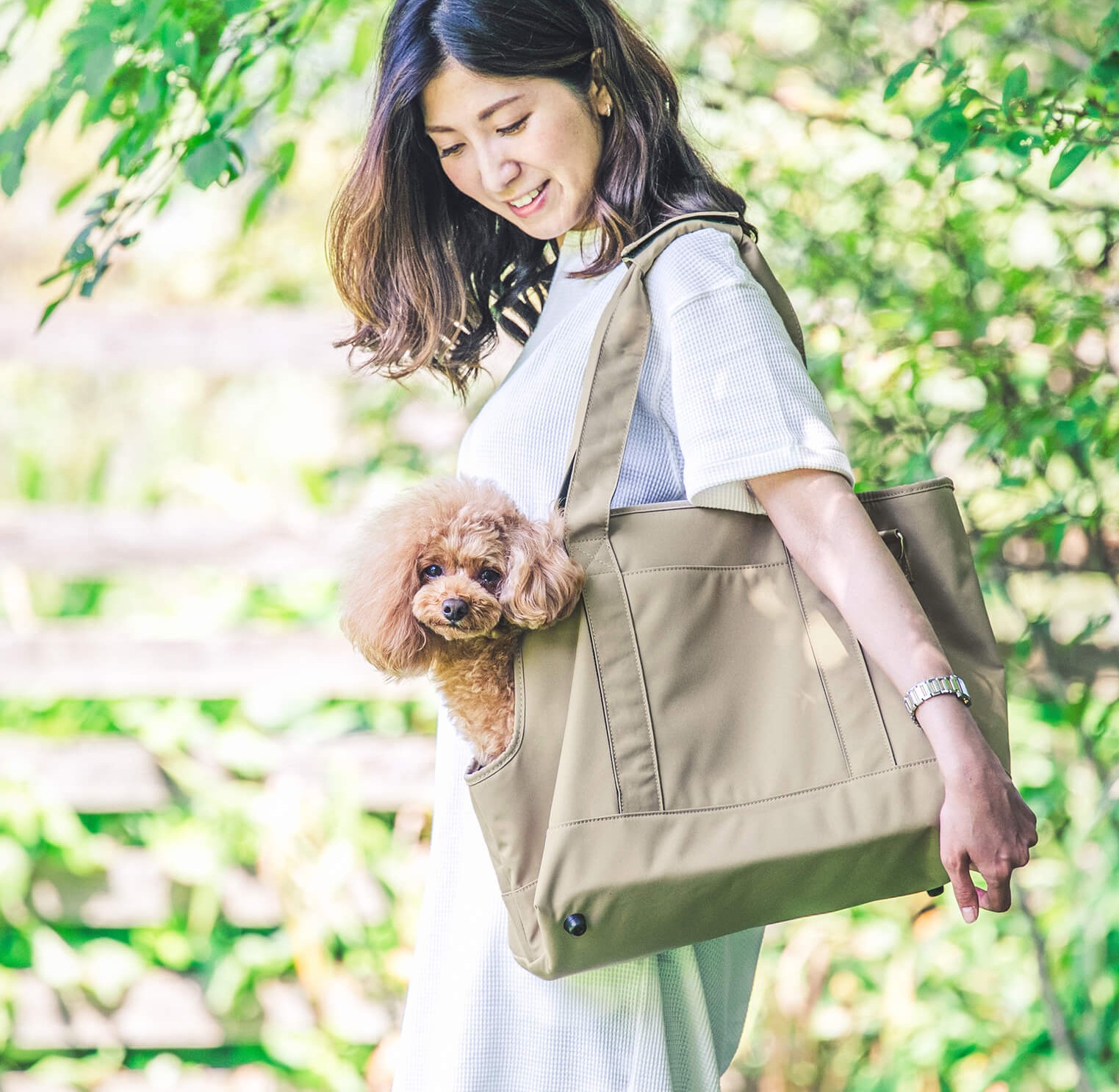 犬を連れて公共交通機関を利用する際、バッグにフタをして顔を隠せることが条件な場合もあります。キャリーケースが大きすぎる、なるべく目立たずに運びたいというときにはトートタイプがおすすめです。見た目はほとんど普通のバッグと変わりません。