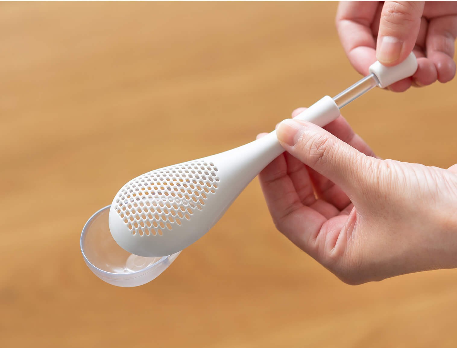 AUX(オークス)のブランド「leye(レイエ)」シリーズの排水溝掃除グッズを使えば、シンクや排水溝の気になる汚れも効率的にきれいにできます。ここでは、重曹などの洗剤を均一にまぶせるマラカス型の粉ふるいや、シンプル構造でお手入れしやすいネットホルダーを紹介します。