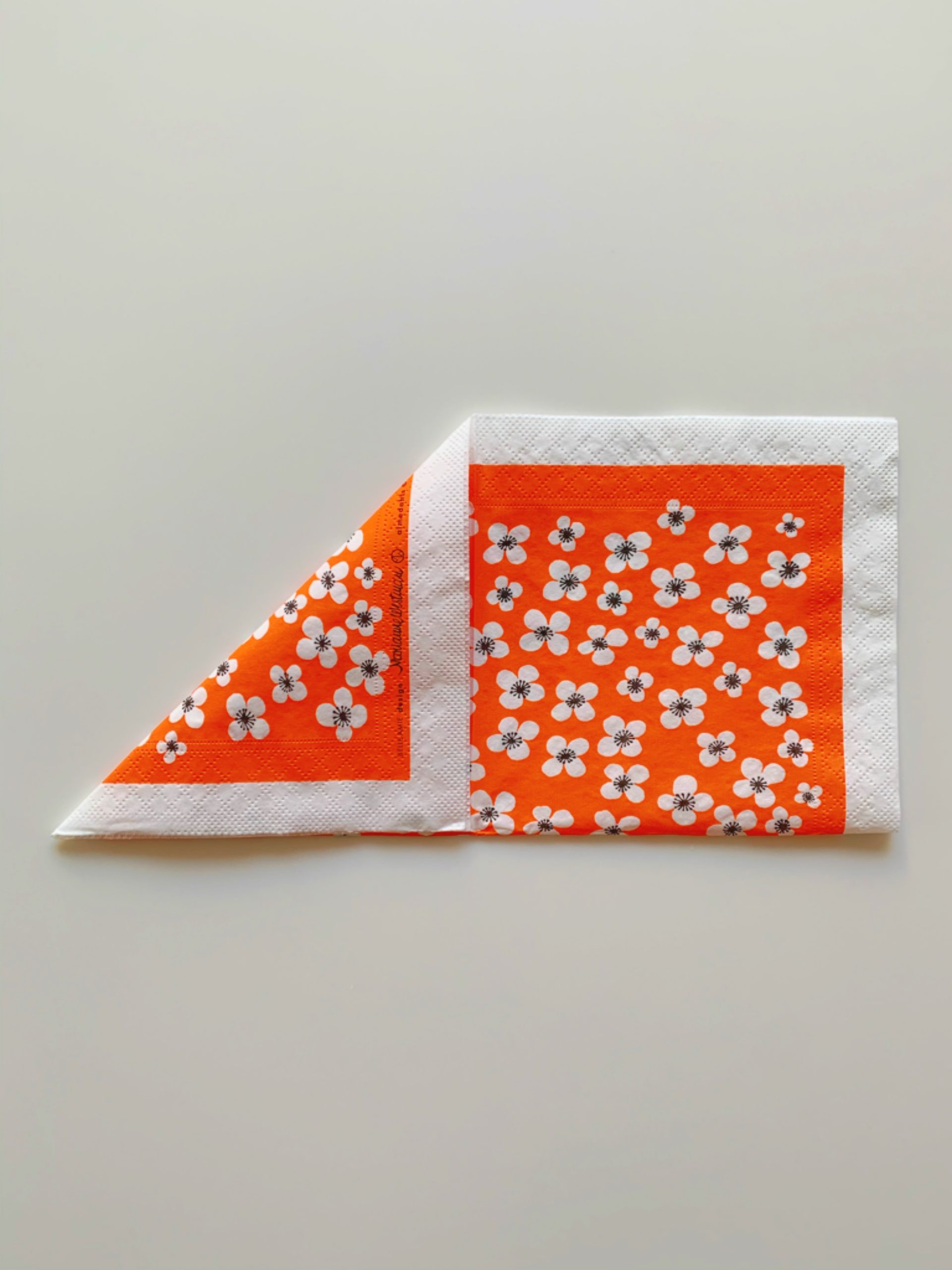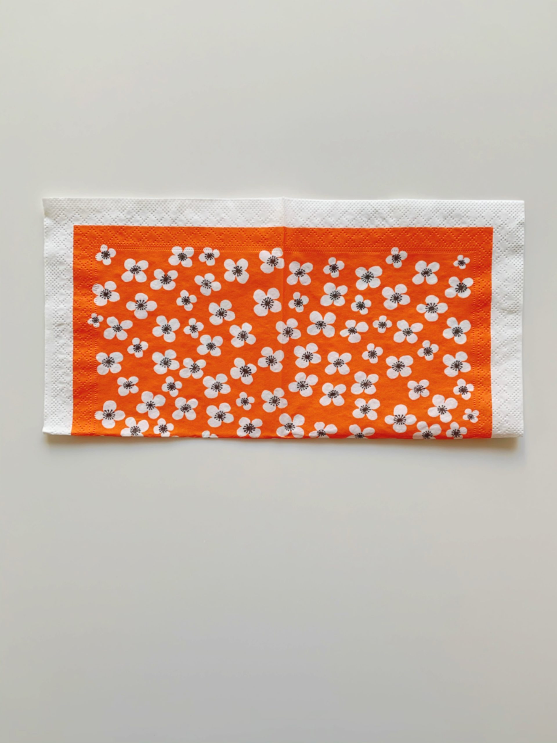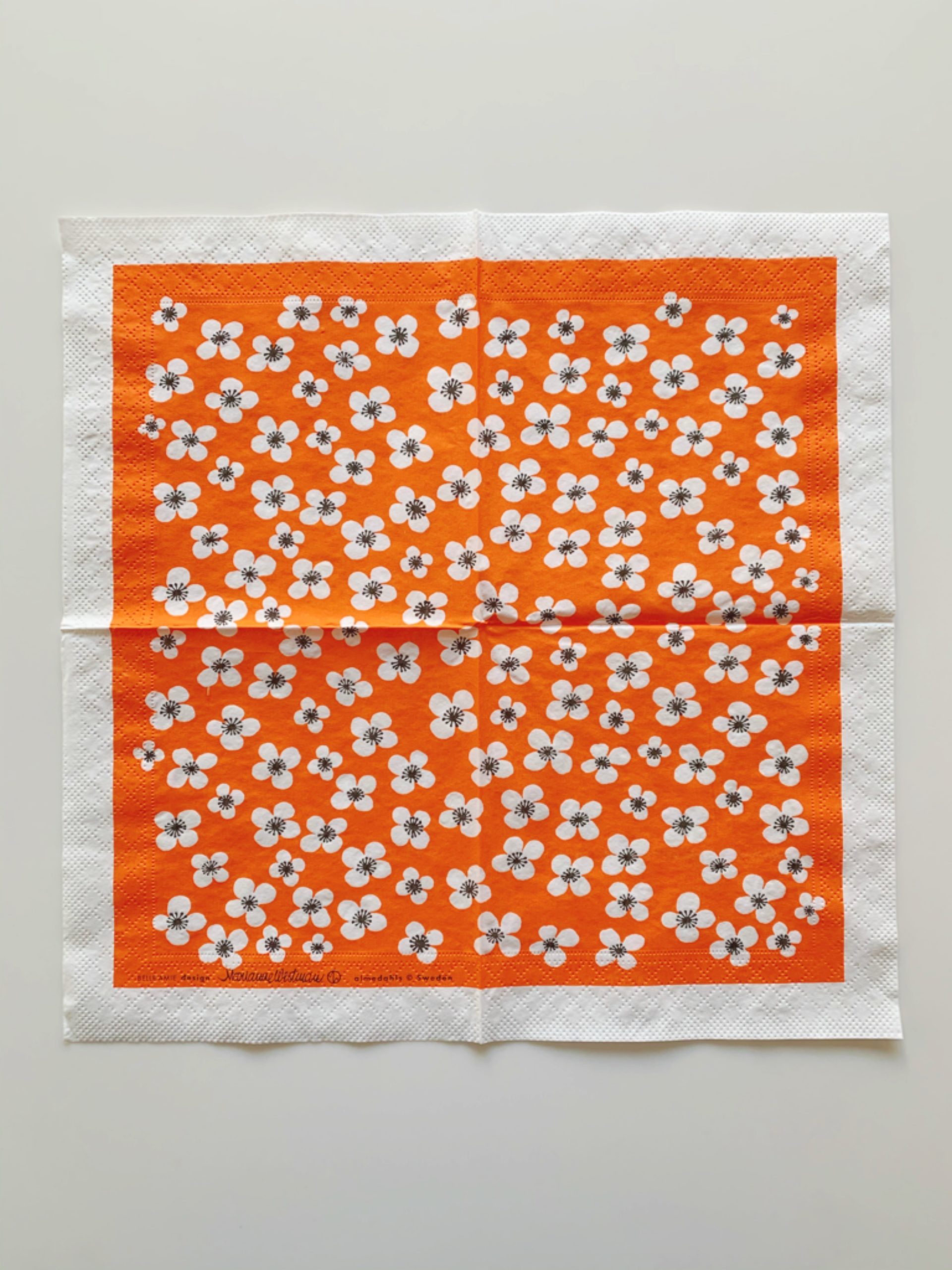 鮮やかなオレンジ色の中に散りばめられた小花は北欧らしさ満点。
