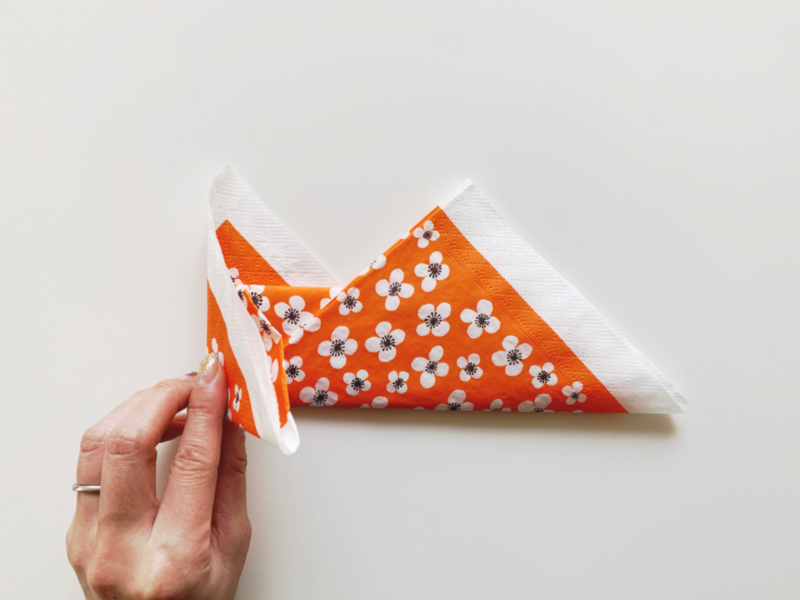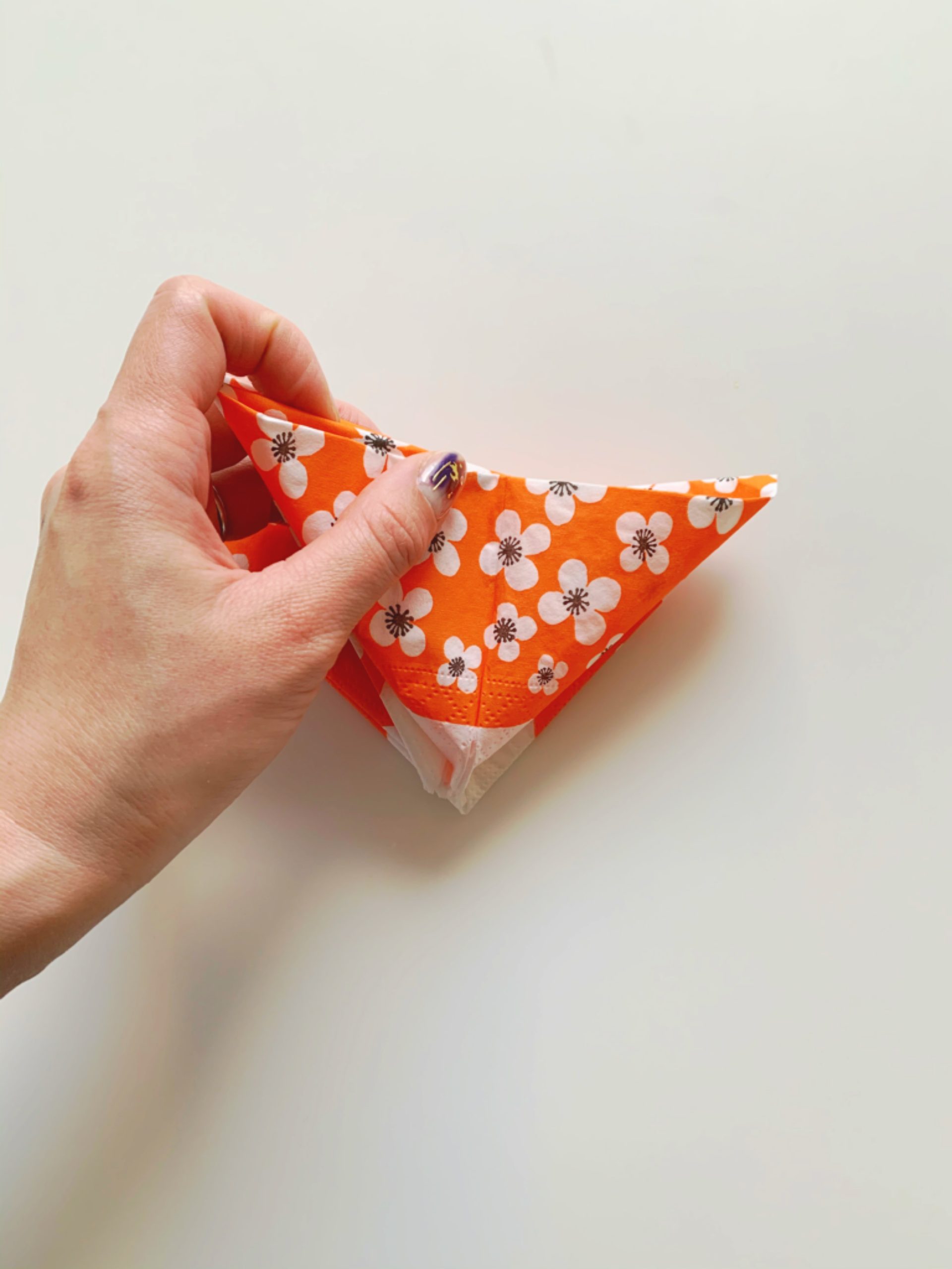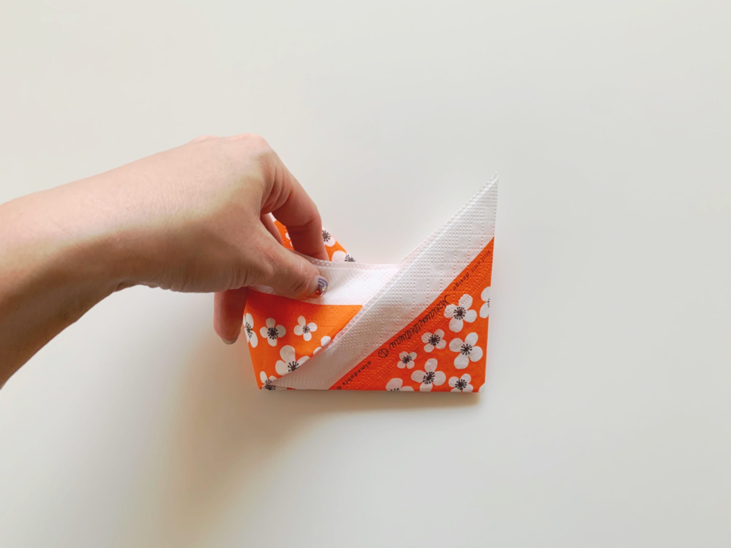 一度裏返し、反対側も同じように三角形の裾に入れこみます。