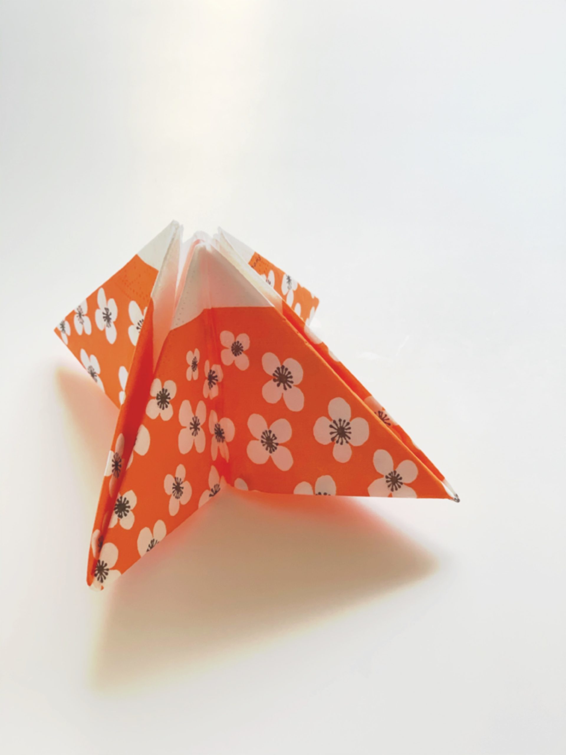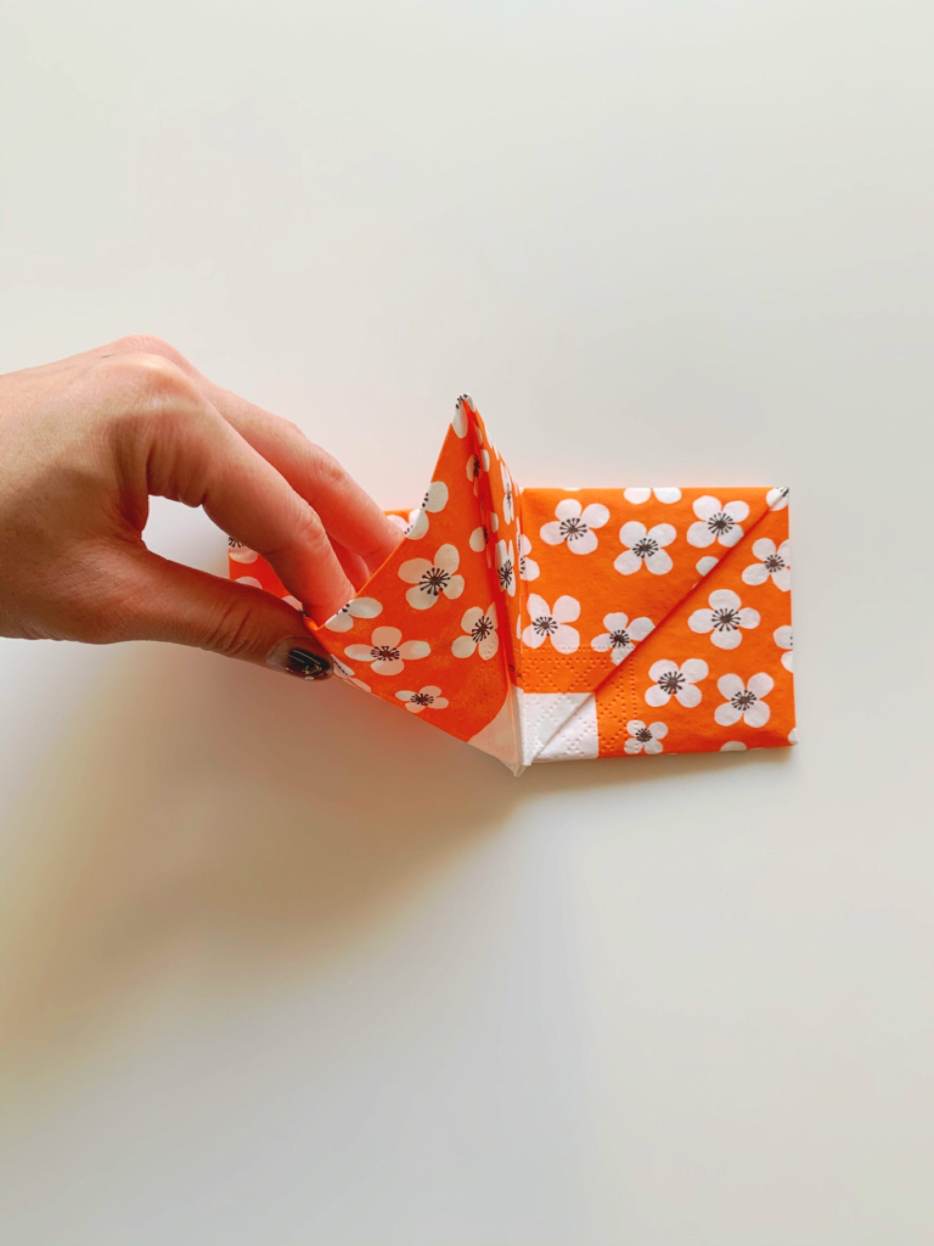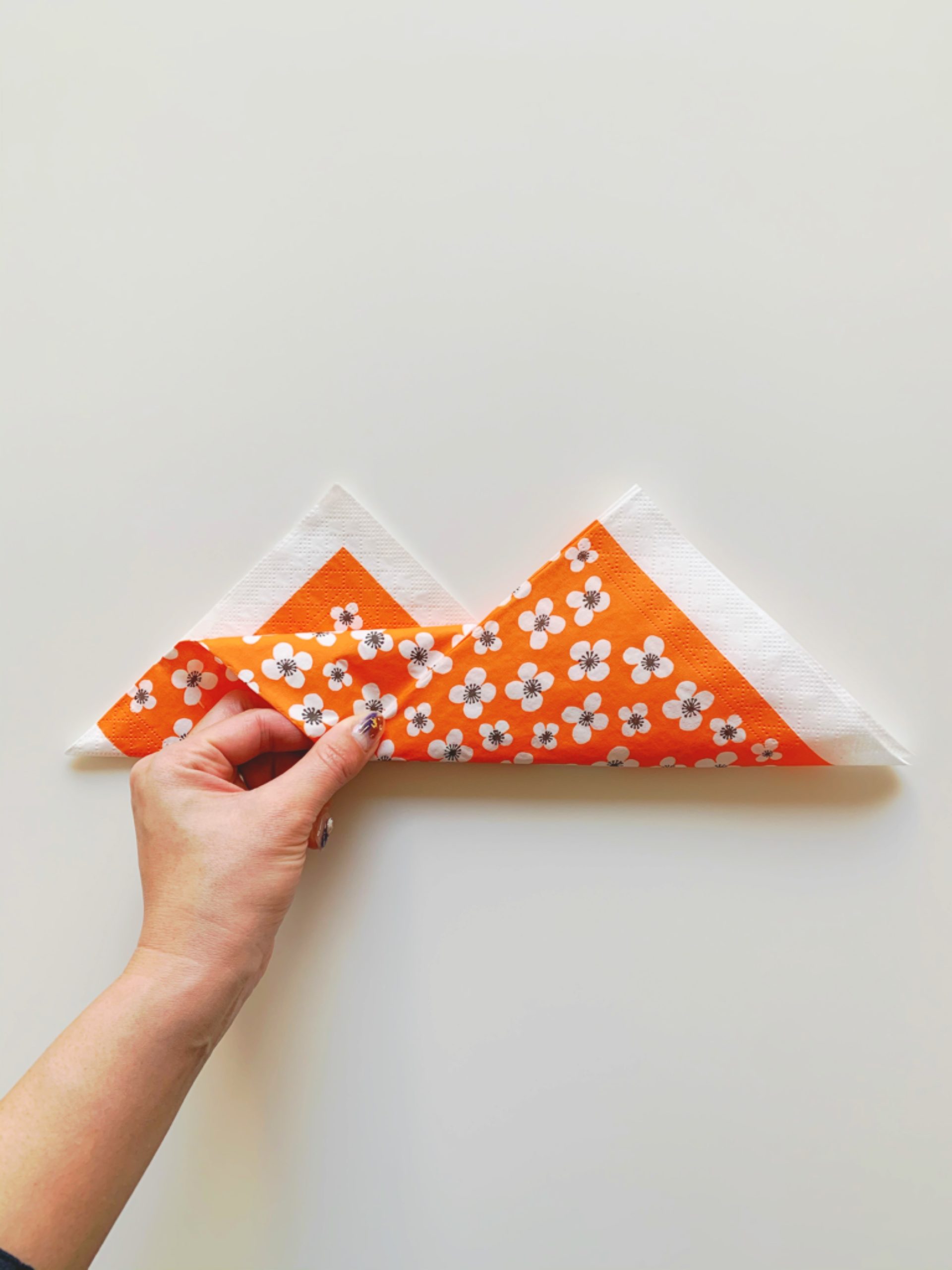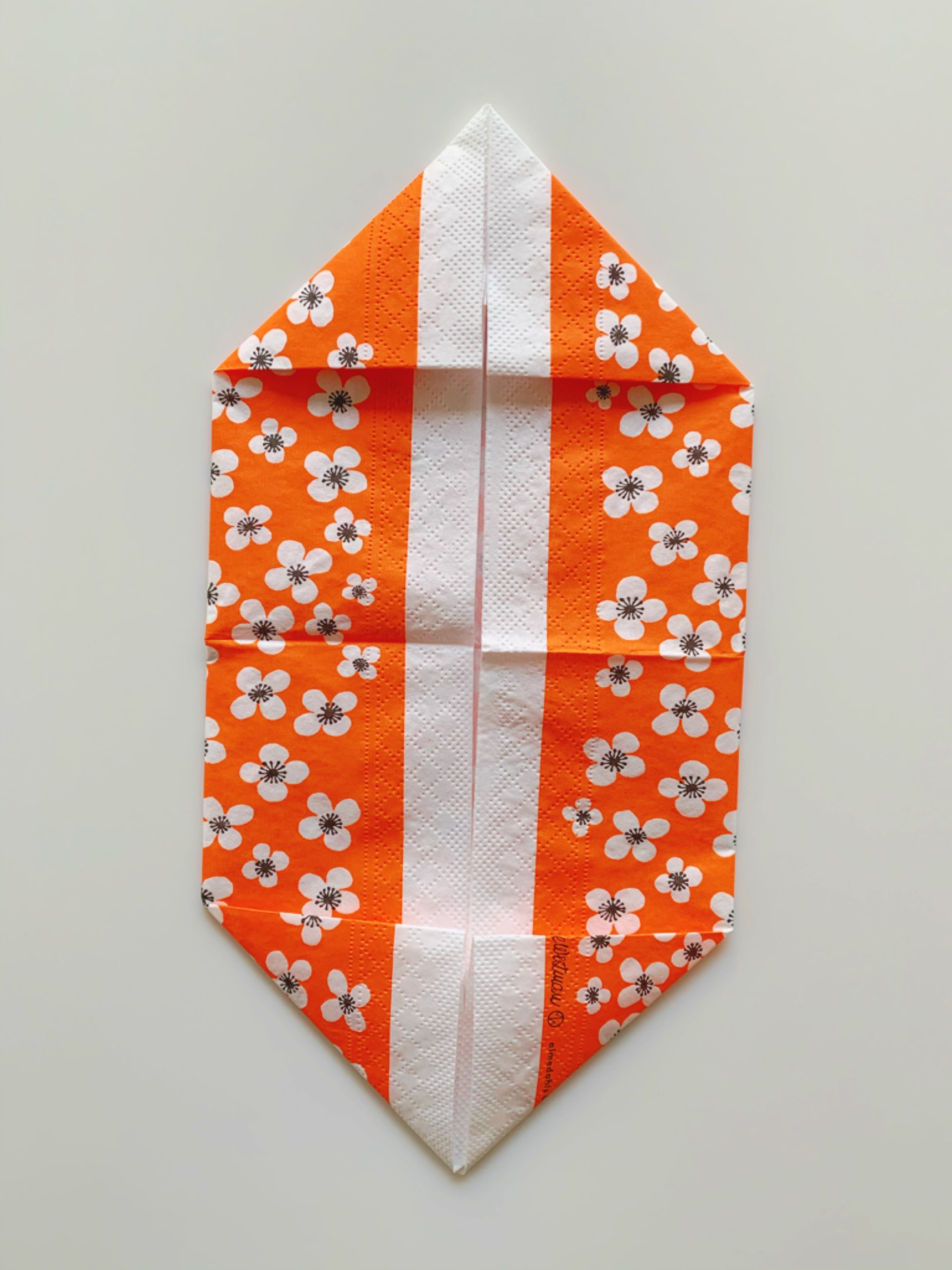 一度裏返し、反対側も同じように三角形の裾に入れこみます。