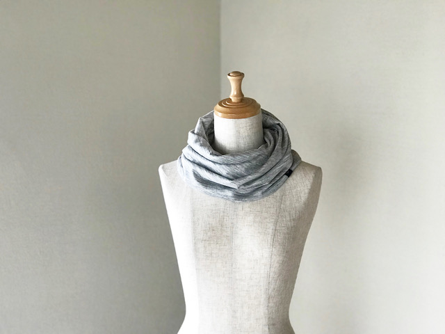 季節の変わり目や室内は軽めの巻物が欲しくなりますよね。BISYUの麻スヌードは、細番手のラミー麻を使用したやさしい肌触りです。シャツにもジャケットにも合う、巻くだけでおしゃれに見えるスヌードは季節を問わず活躍しますよ。