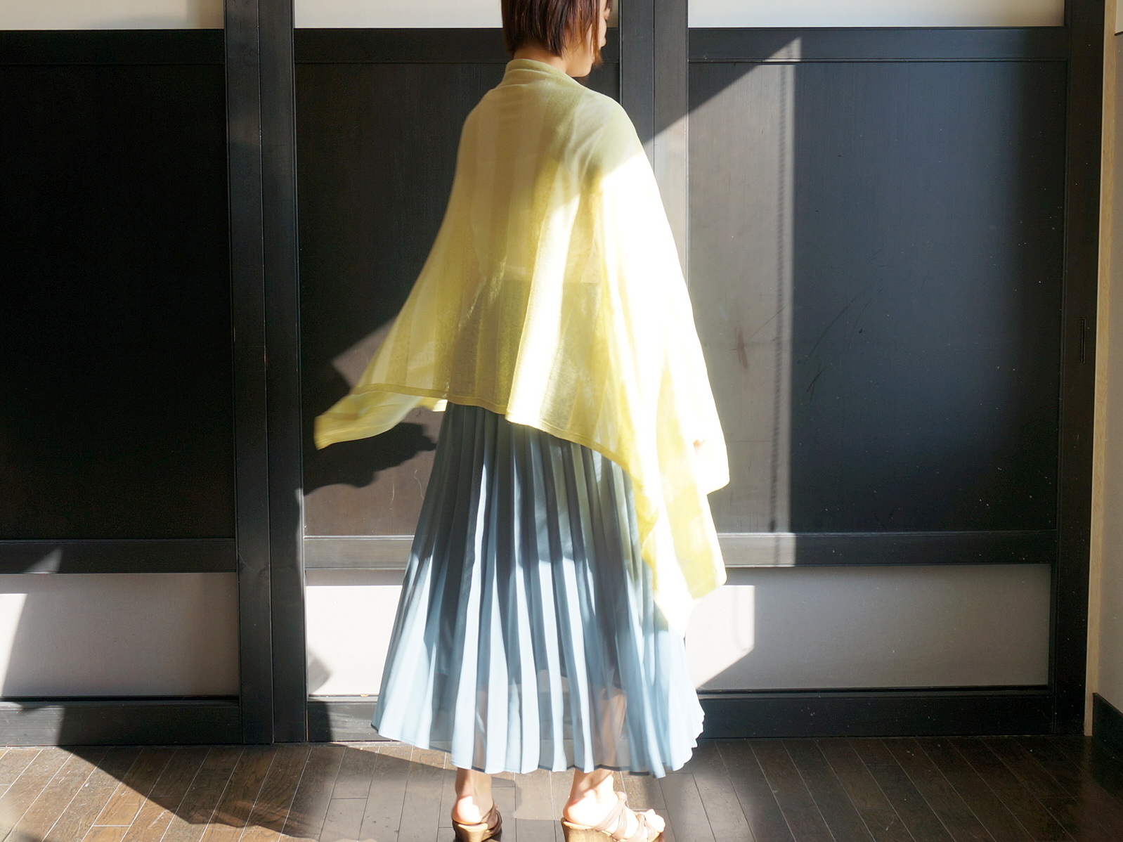 サイズは幅95センチ、長さ130センチとやや小ぶり。しかし重さがたったの270グラムと持ち運びしやすく、少し肌寒いと感じる春先でもさっと羽織って使えます。