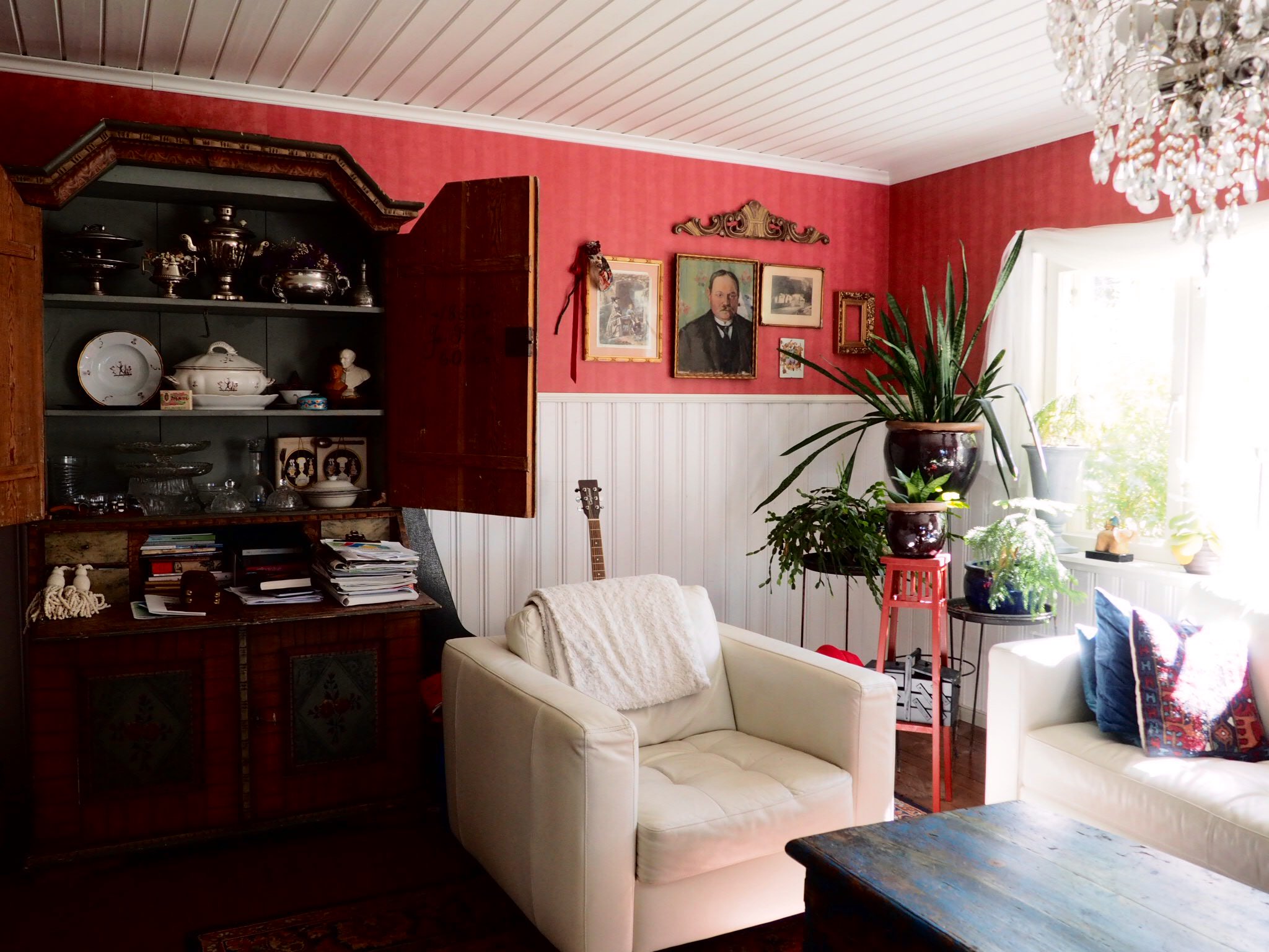 母屋もすてきで、レイラが集めたアンティークの家具や食器や調度品がたくさん並べられています。一面に湖が見える窓で覆われた部屋がいくつもあり、庭ではたくさんの野菜や花を育てたりしています。