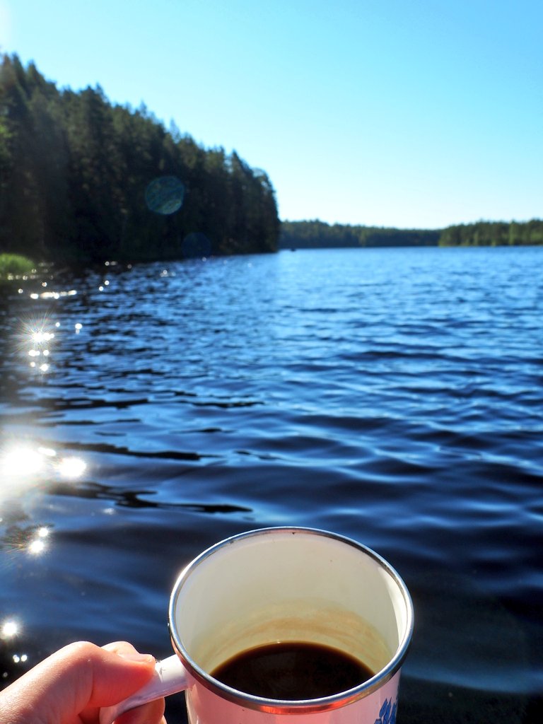 朝ごはんは湖の水を沸かして淹れたコーヒー、そしてその辺にわんさか実っているブルーベリー。茂みから採ってそのままポイと口に入れます。太陽と土の甘い味。カモメが隣にずっといます。笑っちゃうくらいフィンランド。