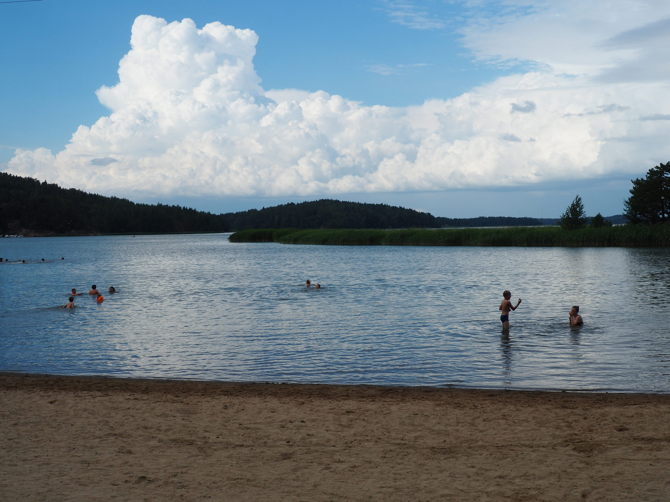 暑さには慣れていないフィンランドの人たちは「暑い暑い」としきりに言い、いつもは太陽の光を求めてテラスや公園に集まる人たちもこの夏は涼しさを求めて屋外や日陰を求め歩いています。普段から海に湖に川にと泳ぎに行くのが好きな人が多い国ですが、この夏は特に水辺で過ごすことが多いように見えます。
