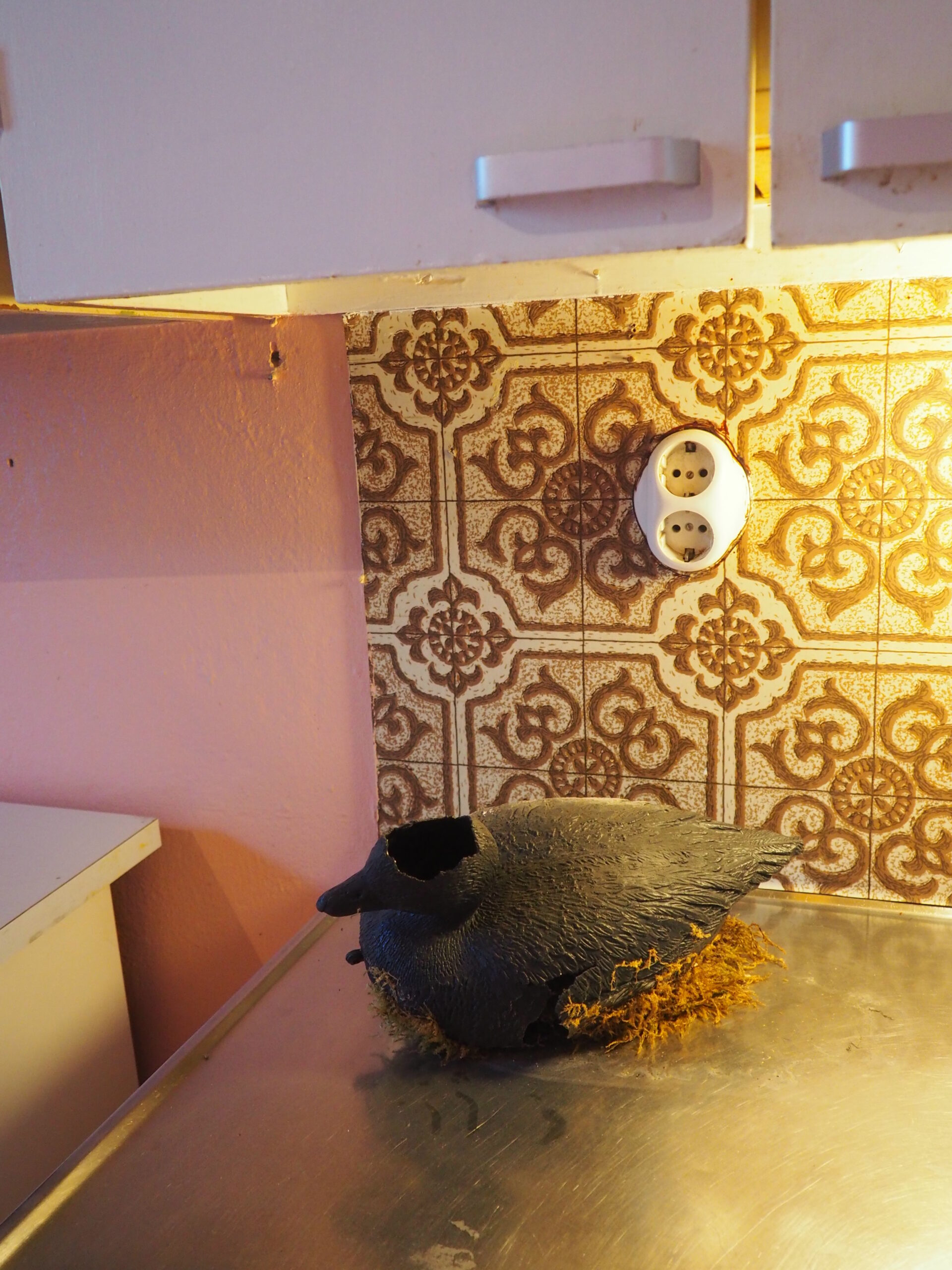 ボートを降りると、冒険の始まりです。すぐ目の前の廃墟となった当時の島の住民用のアパートメントの各部屋に、インスタレーションや絵画、写真や映像作品などが展示されていました。ノスタルジア、アイデンティティ、歴史、オブセッション、移動、環境問題、政治、と様々な思いや主張が交錯した場となって、私たちに多くのことを語りかけていました。