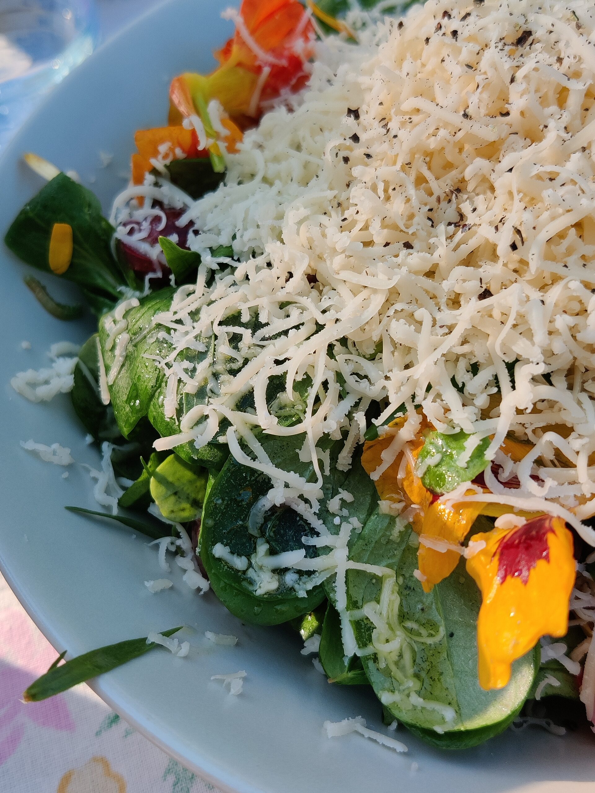 この日の晩ごはんはベンヤミンのお父さんが80年代から作っているという、海老とバターの米料理でした。サラダはベンヤミンが庭で採れた野菜やベリー、花などで作った、慎ましやかだけど華やかなサラダ。「庭でゆっくり陽の光を浴びて晩ごはんを食べられるのも今夜が最後かもねー」と皆で話して、晩夏の美しい空気を身体いっぱいに感じました。