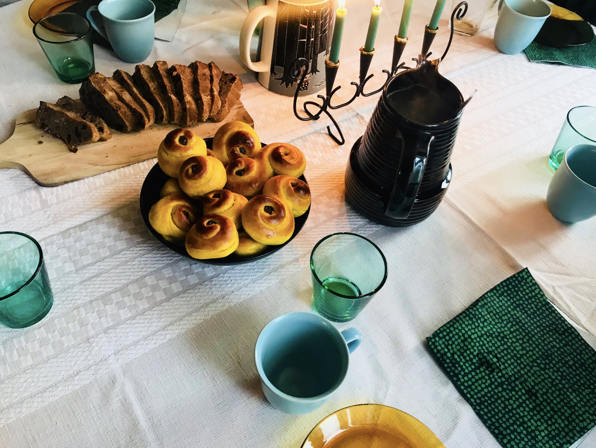 一方で、Lussekatt(ルッセカット)というサフランパンを焼いて食べる習慣がある人たちもいます。こちらは隣国スウェーデンでこの時期に食べられる焼き菓子です。家族も含めて私の周りにはスウェーデン系フィンランド人の人々が多いので、伝統的にこちらのお菓子に慣れ親しんでいる人も数多いのです。12月13日のルシア祭(光の聖人・ルシアを祝う祭)のあたりに食べられる黄金色のパンは、ほんのり甘く、高級品であるサフランやバターがたっぷり使われています。