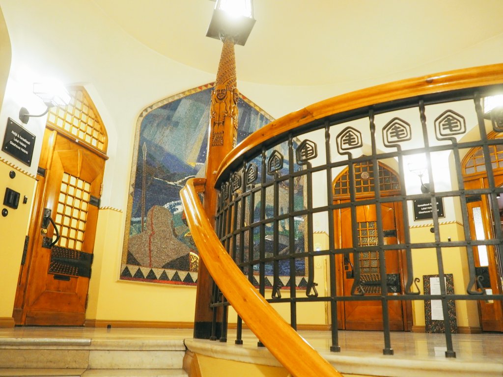 場所はヘルシンキの中心を走るアレキサンダー通りにある、1899〜1901年に建てられた元Pohjala社(大手保険会社)の本社。1987年からは「Kansallissali(ナショナルホール)」と正式名称が変わり、民間に貸し出しされるホールとなりました。建物はアールヌーボー様式(正確にはフィンランドのナショナル・ロマンティシズム)で、ファサードにはフィンランドの民族叙事詩カレワラの登場人物や熊やトロールの彫刻、内装のステンドグラスはきのこがあしらわれています。