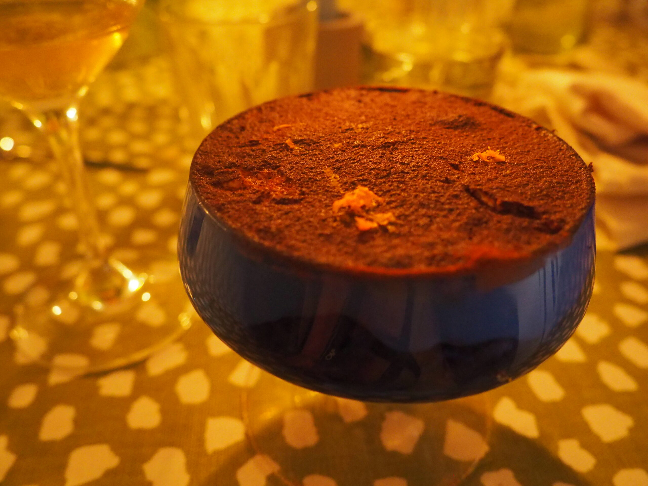 カーテンを開けると、ばら色の服を着た二人がローズ・ネグロニを手渡してくれた。「ようこそ!」