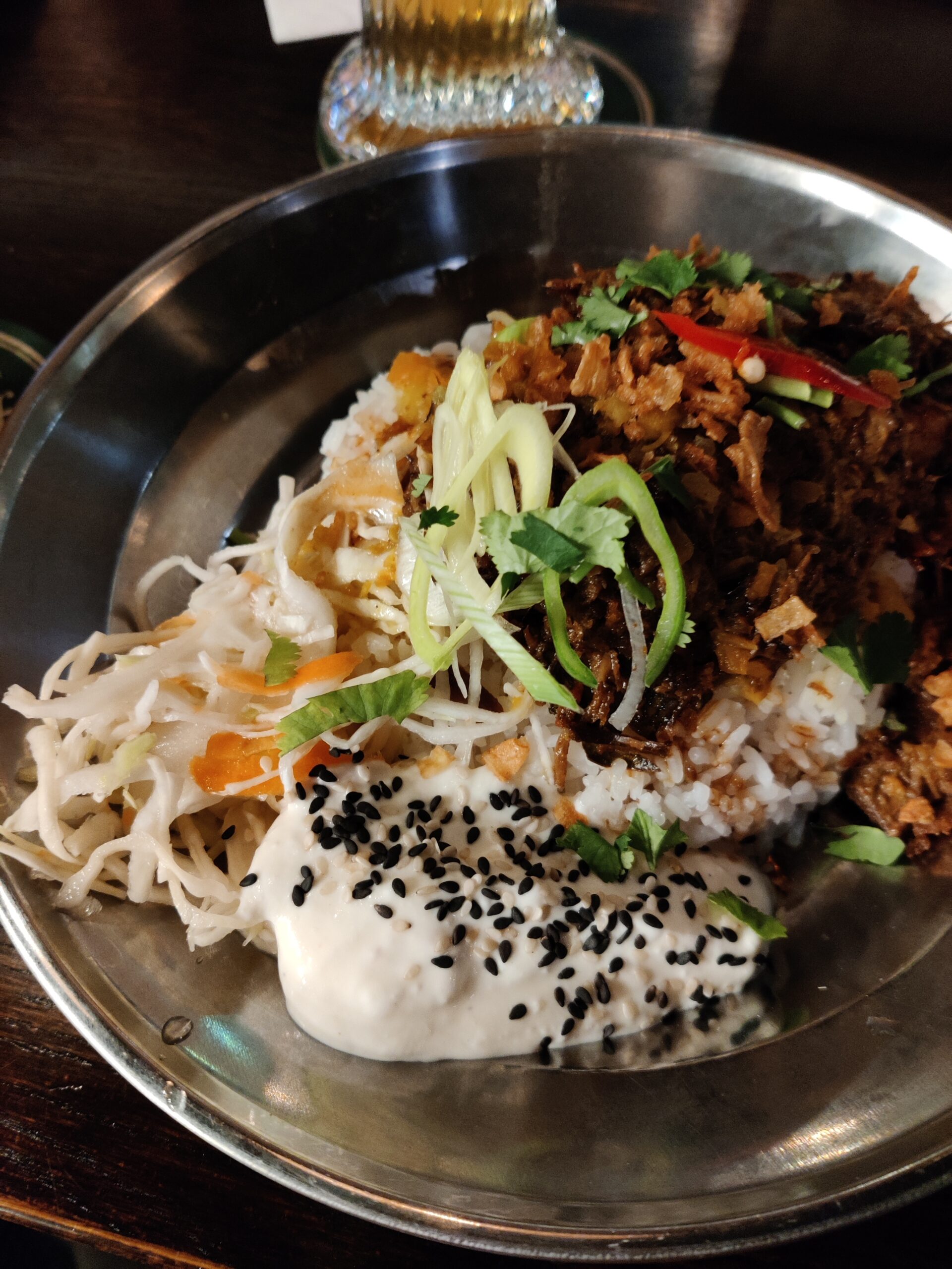 ボルダリングのあとは、インドネシア料理を食べながらビール。