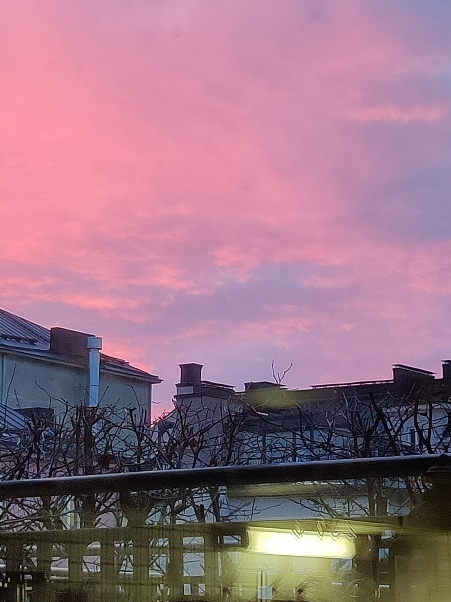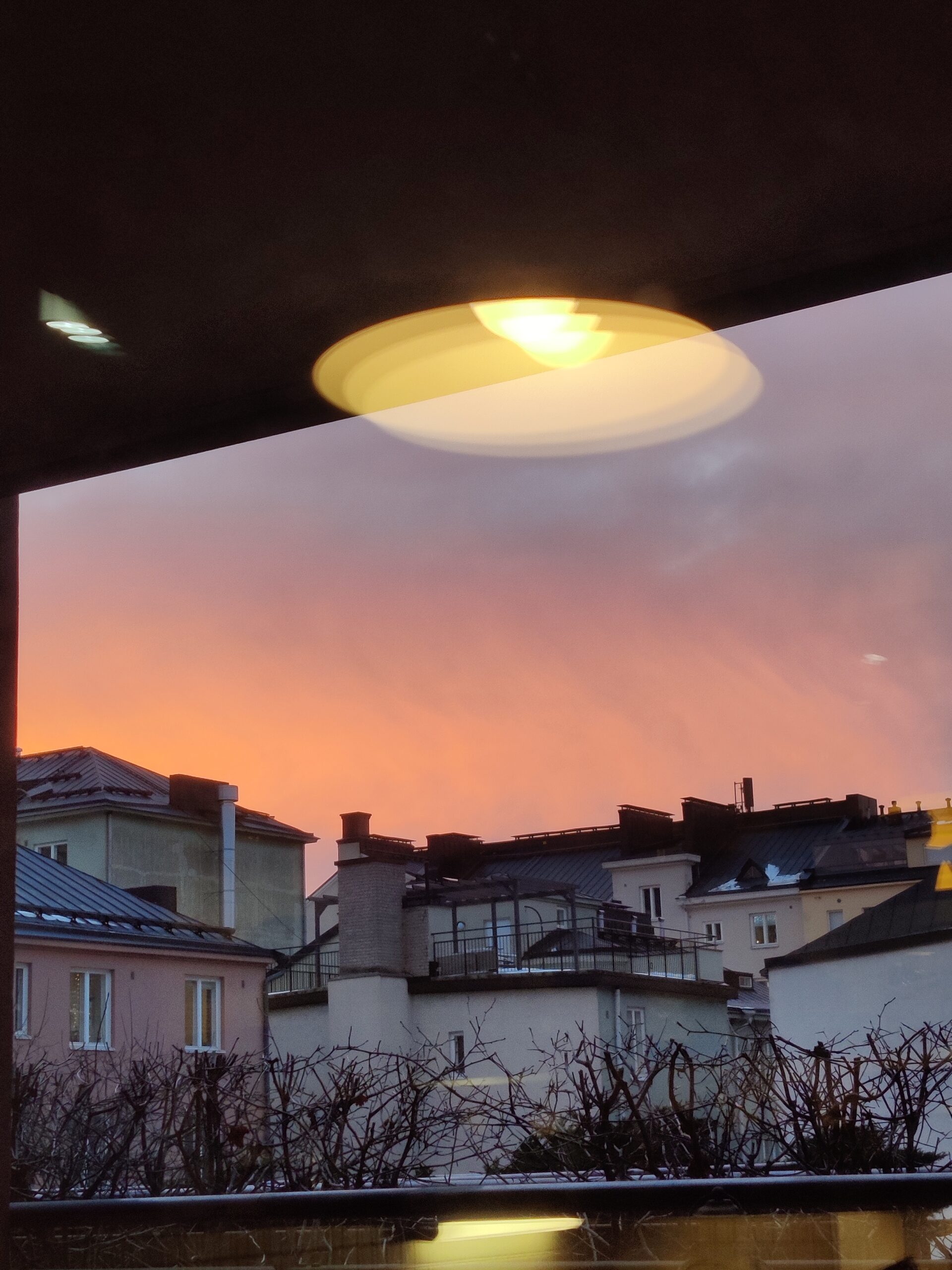 この週は夕日がとっても綺麗でした。ルバーブ色の空。