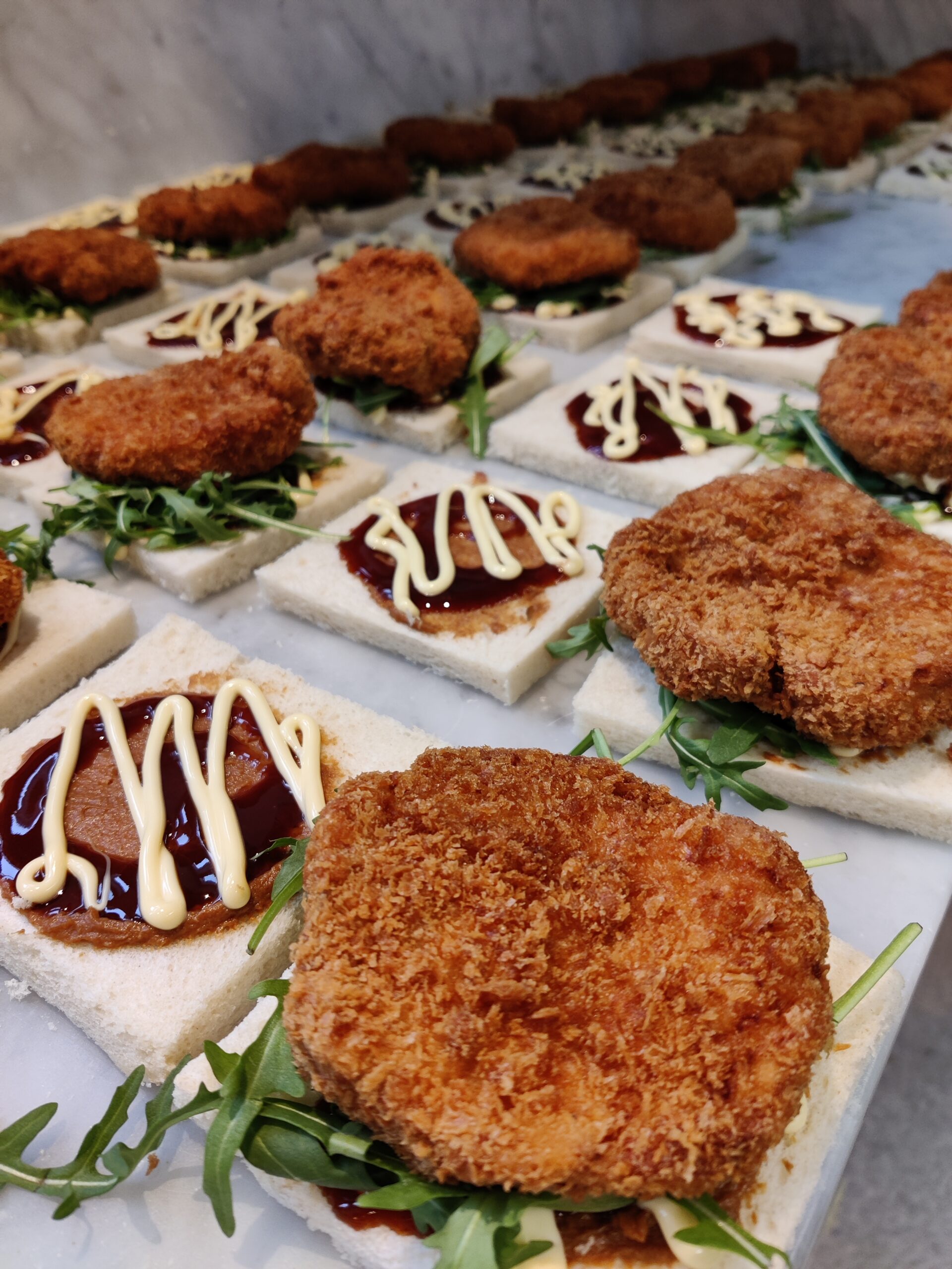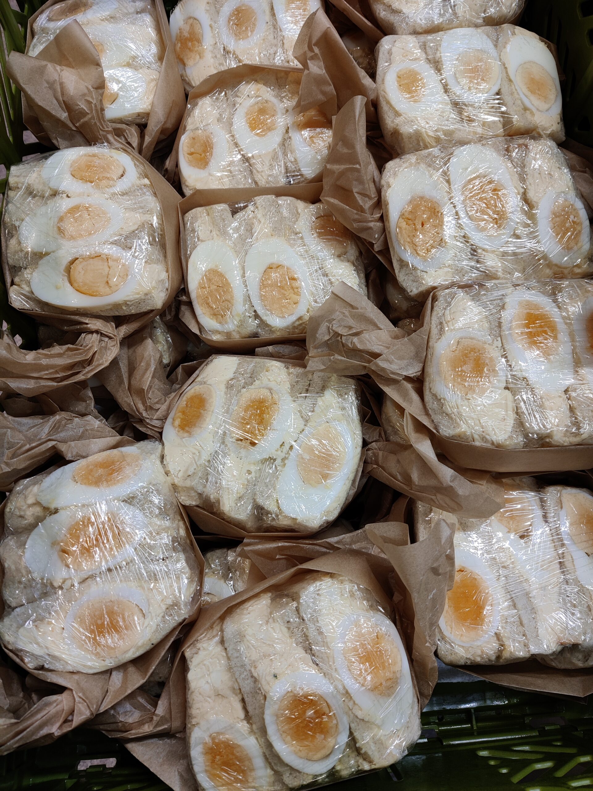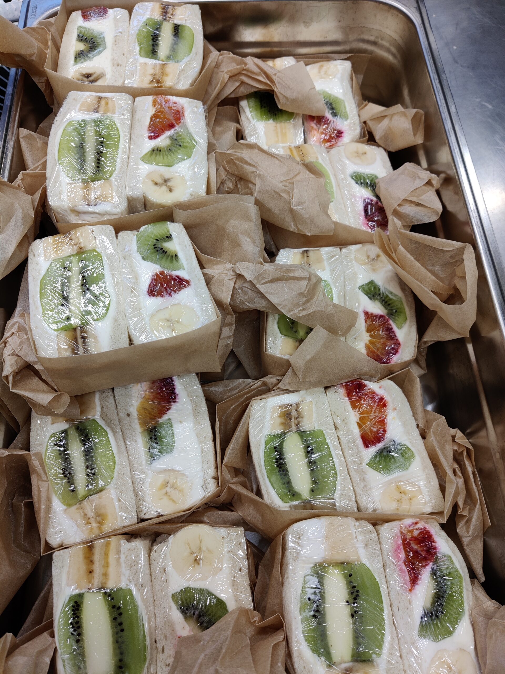 早朝からみんなの力を借りて、カツサンド、白身魚のフライのサンド、玉子サンド、フルーツサンドを作って売りました。