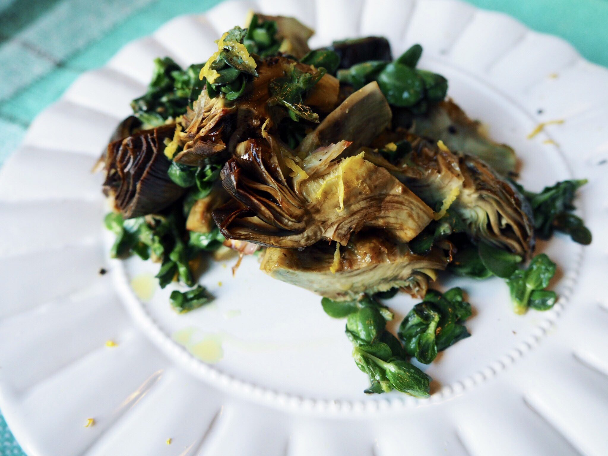 食感を生かして生で食べるのが一番美味しく、酸っぱいソースが合います。こちらはアーティチョークをオーブンでローストして、オリーブオイルとレモンの皮、マンネングサ属と和えたシンプルな料理。