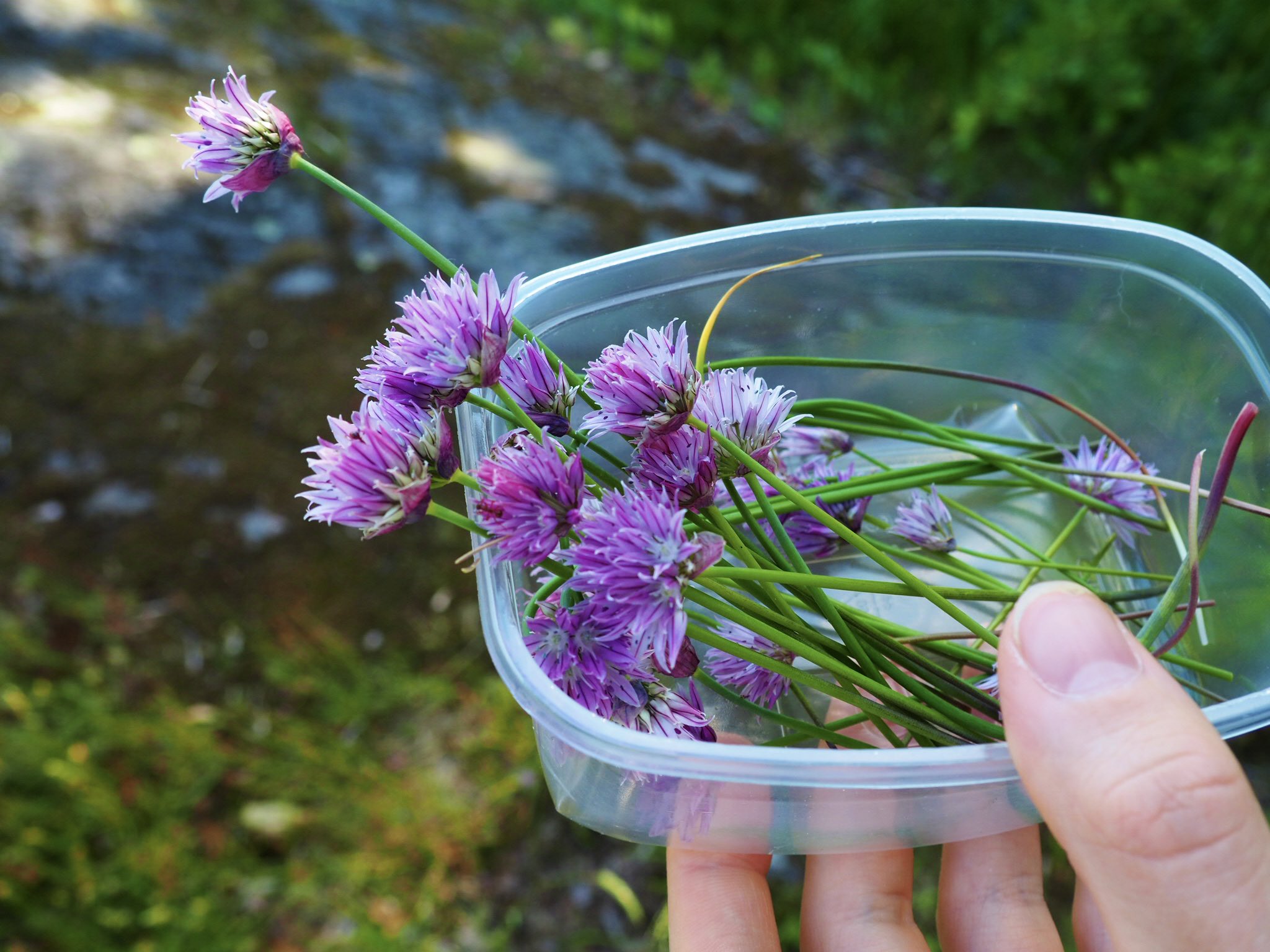 ランマスサーリでよく採取するのはruoholaukka(英語:chives、仏語:ciboulette、日本語:セイヨウアサツキ、エゾネギ)の花。自分たちも育ててるけど、海沿いに野生で生えているものを見つけるととっても嬉しい。小葱なので茎も花もネギの味。これを使った料理はかくべつに美味しいのです。