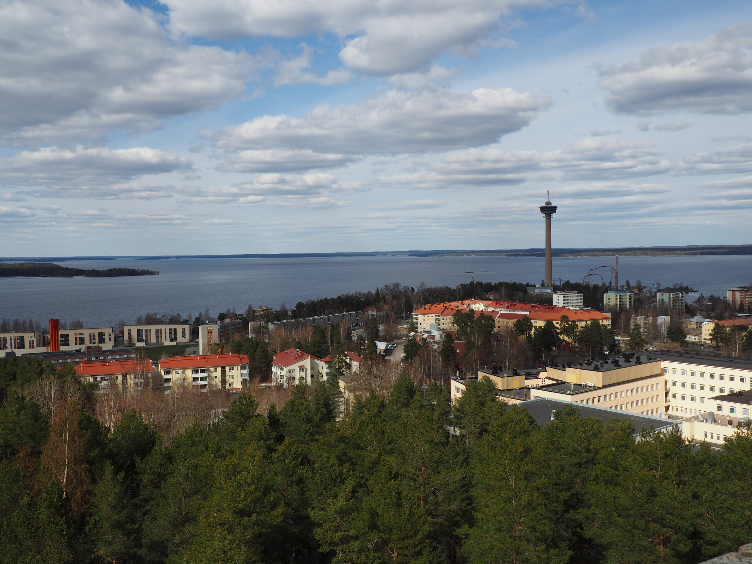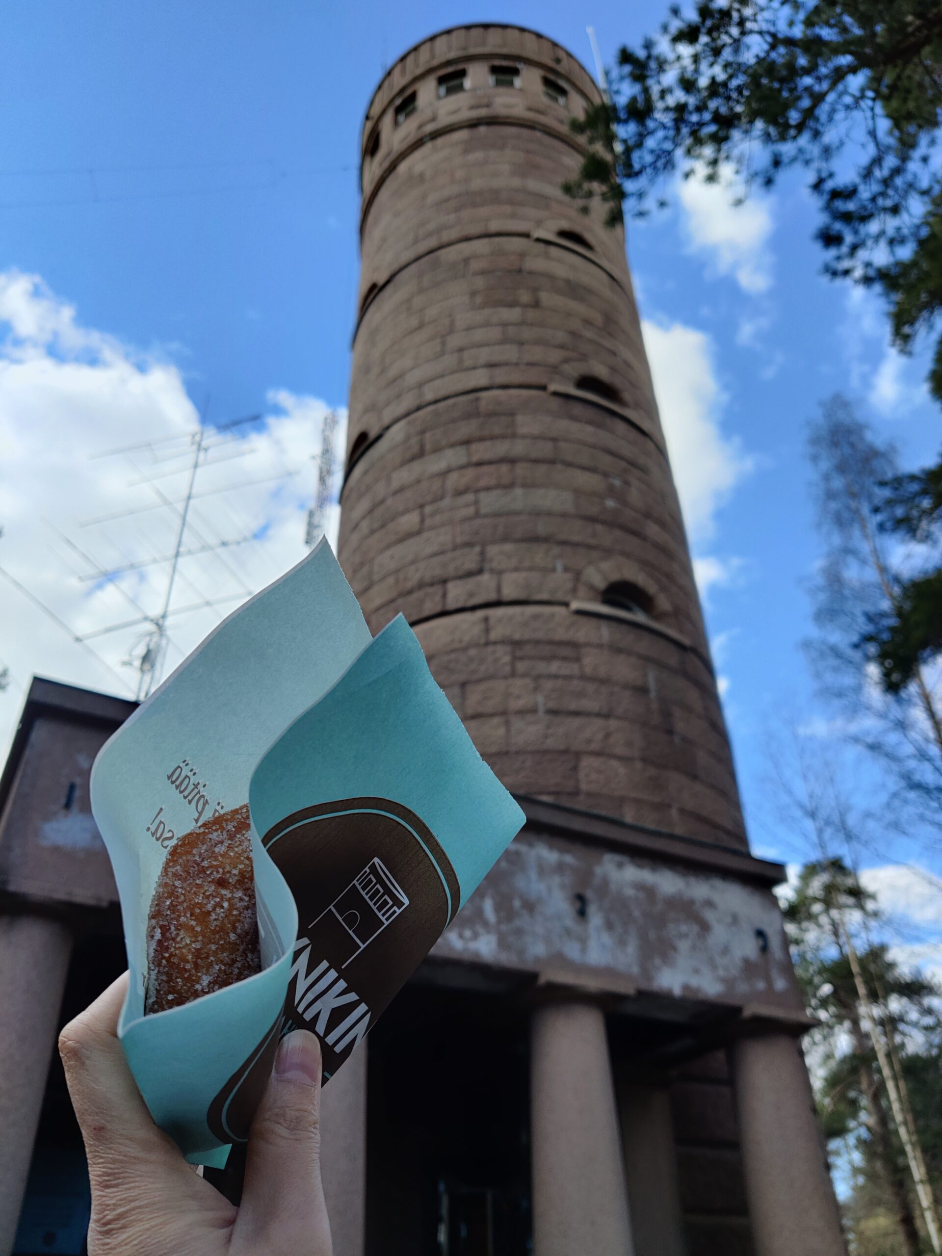 ドーナツ(ムンッキ)を食べて、展望台に上ってタンペレを一望しました。
