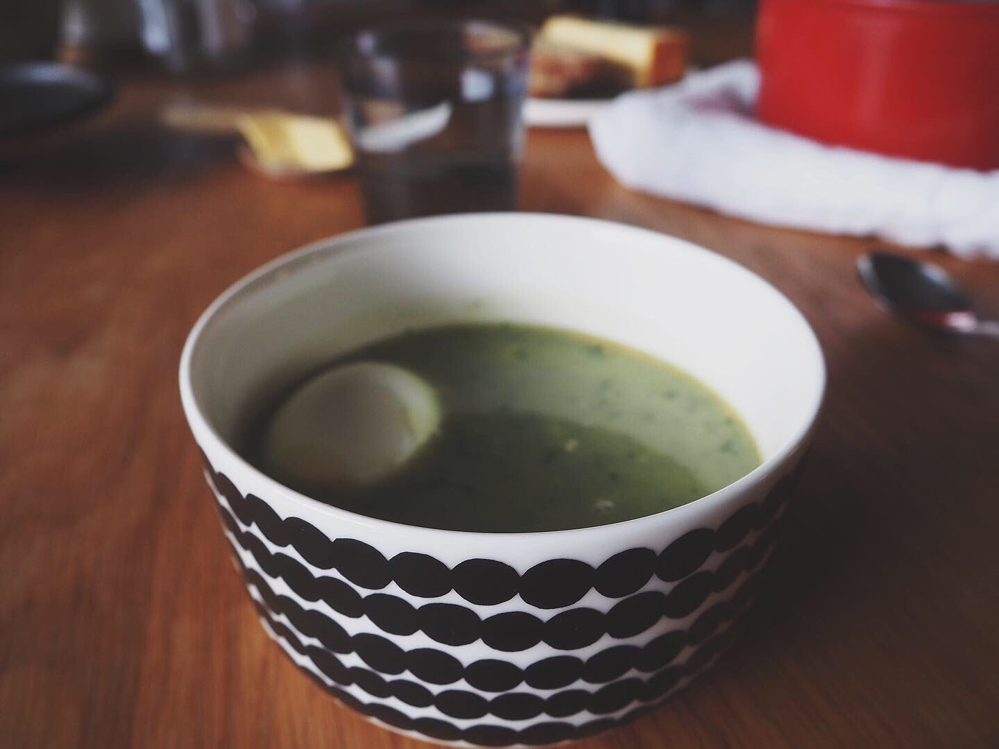 ⑥沸騰させないよう注意して再び熱して、スープ皿に盛る。 ゆで卵と一緒に食べると、より当時のフィンランド風に近づく。