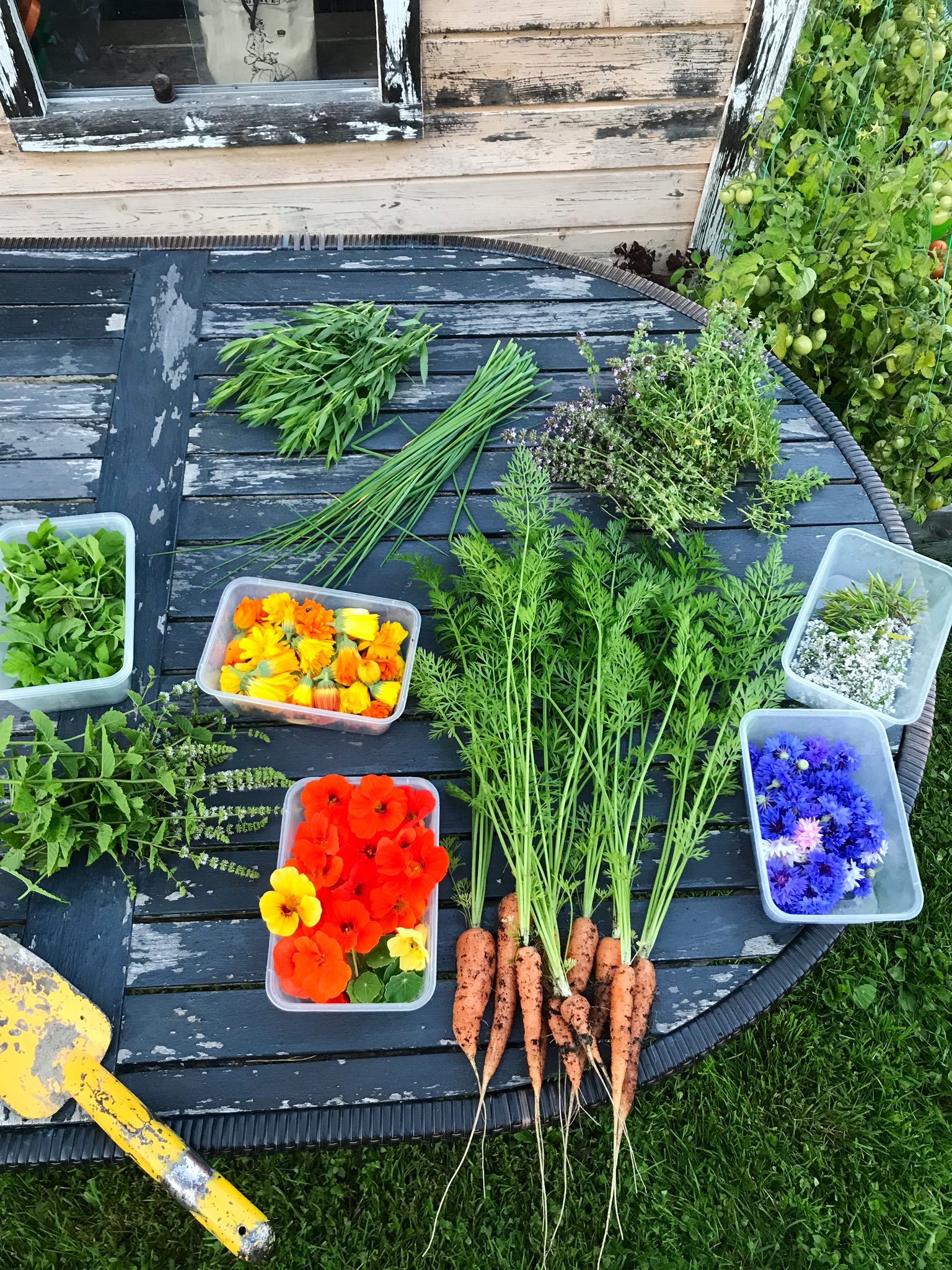 上に乗っているハーブやたんぽぽは庭から採ったものです。
