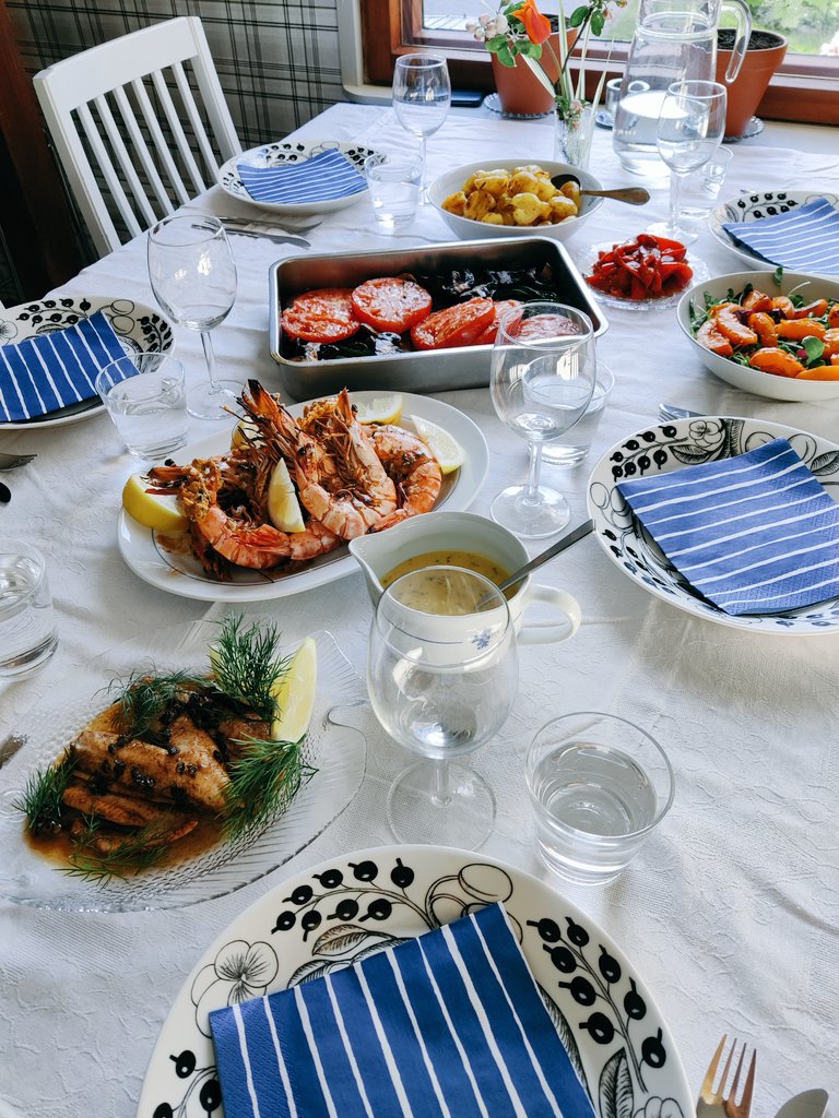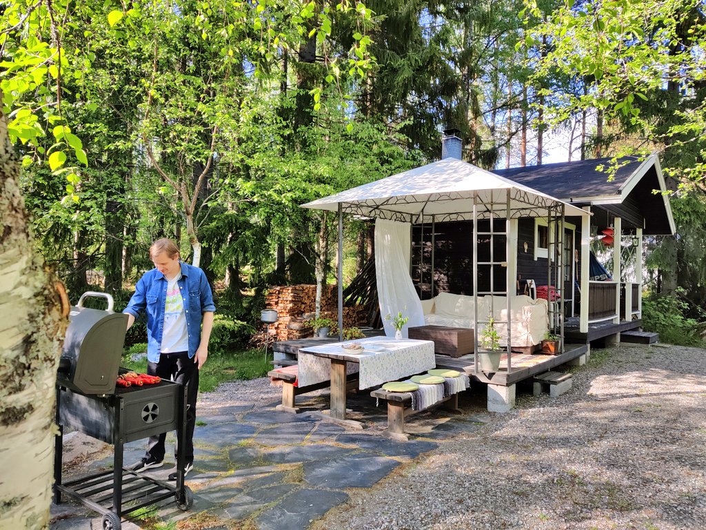 夜ごはんは庭でバーベキュー。フィンランドのバーベキューは日本のバーベキューと違って、焼く人は大抵一人。一気に焼いてから食べます(日本だとみんなで囲んで焼肉のように食べるような…?人にもよるのかな)。暖かい日はバーベキューの後ろにあるパティオで座って食べ、肌寒い日は家の中に持っていて食べます。この日は屋外で食べました。