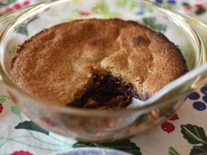 器はケーキ型でもいいのですが、スプーンなどですくってよそうため、テフロン加工されている場合は表面を傷つける恐れがあるので、避けた方がいいです。今回は丸型を使っていますが、角型や楕円の器もお使いいただけます。小さ目の器で人数分に分けてもいいです。