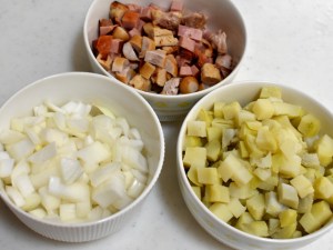 スウェーデン料理だからと厚切りベーコンやハムなどスウェーデンに寄せた材料を用意することはありません。手に入る材料で自由にお作り下さい。何せそもそも残り物料理ですから!