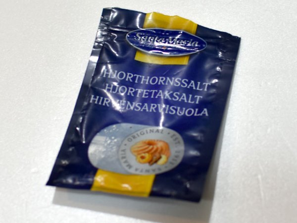 それから、デジ村レシピにある『炭酸アンモニウム』は日本語ではむしろ『鹿角塩(ろっかくえん)』の方が通用するかも。この鹿角塩については何度も書いたので繰り返しになりますが、スウェーデンと違い、日本では専門的なお店でないと手に入りません。代用にベーキングパウダーを大体2倍にすればいいでしょう(レシピによるので必ずしも2倍、ではないですが)。