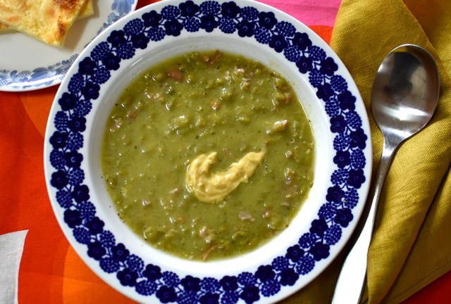 通常は(フィンランドでもスウェーデンでも)乾燥豆を使って作るのですが、どこでも売っている冷凍グリーンピースで作ってみました。やってみると、豆を戻す時間(一晩)はないし、あらかじめ煮る時間(1、2時間くらい)はないし、なんと半日くらいの短縮に!