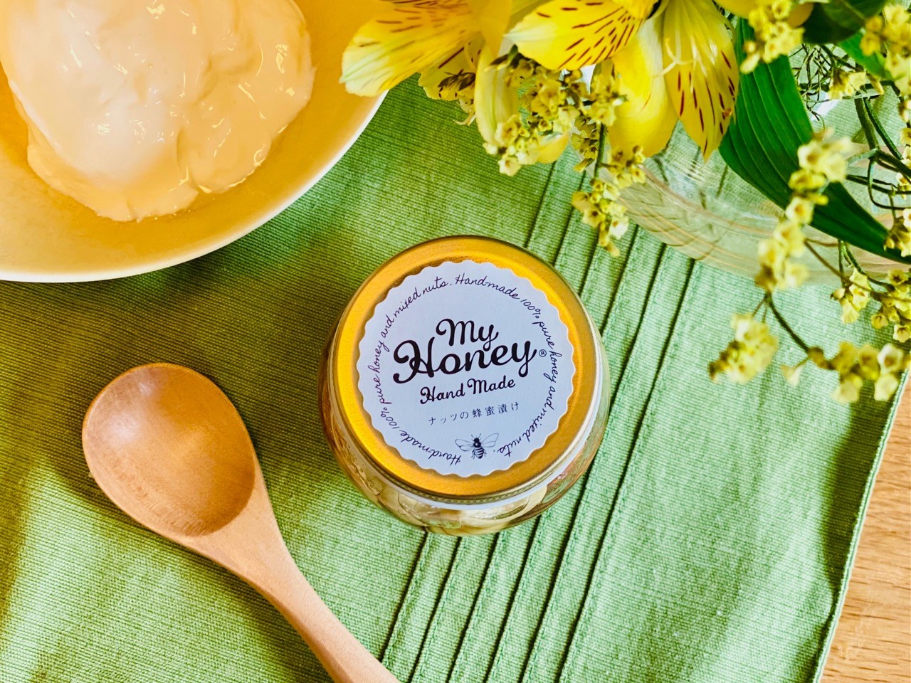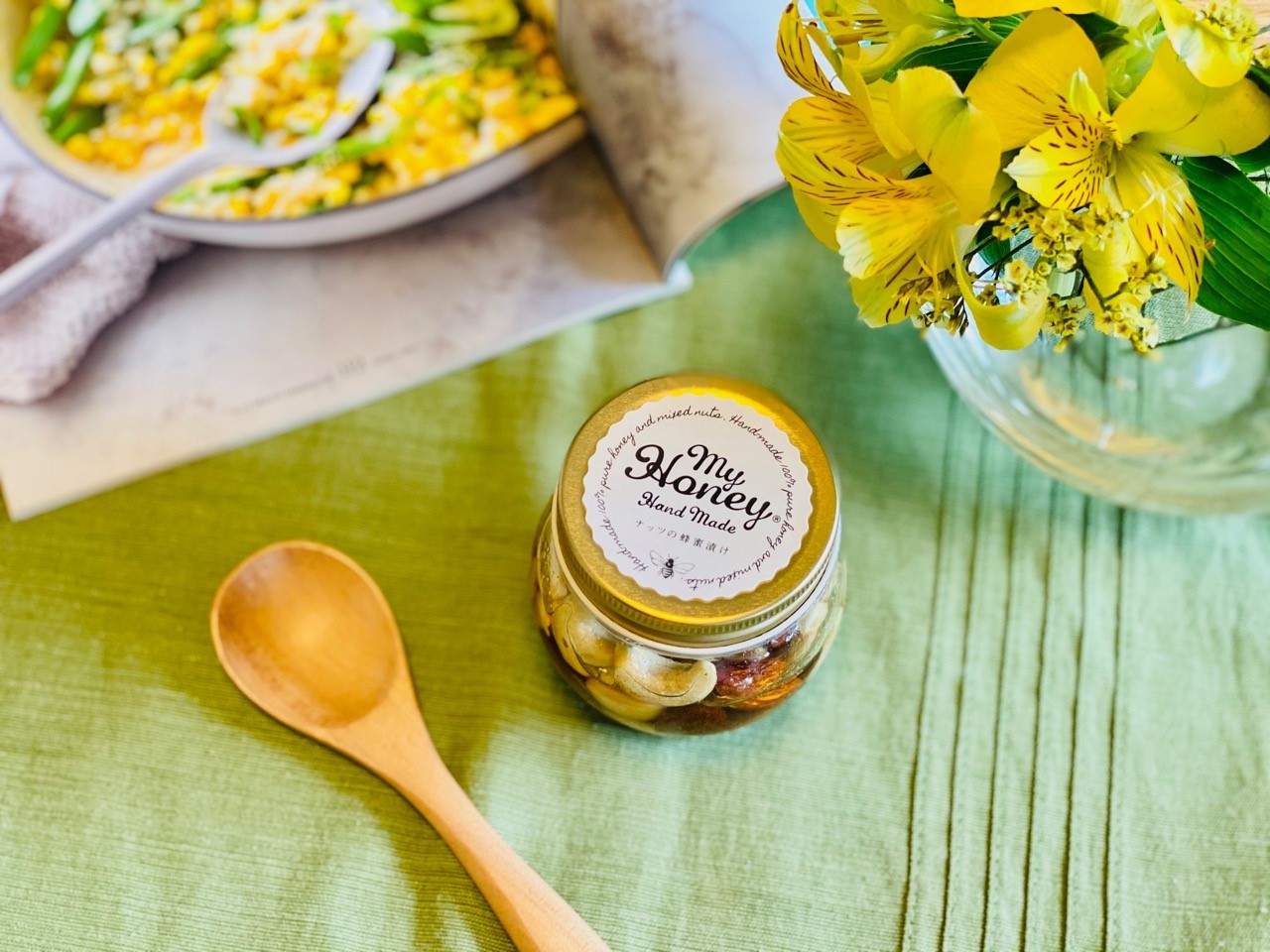 もちろん、白砂糖・乳製品・乳化剤・保存料・着色料・化学調味料・人工甘味料などを一切使わない「MYHONEY」の生はちみつ製品らしく、ナッツ類も全て有機のもの。
