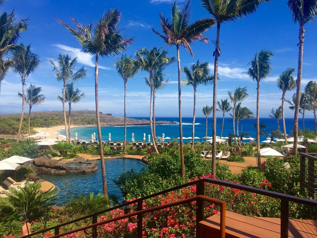 まず私が心を射抜かれたのが、Four Seasons Resort Lanaiのエントランスホールを抜けた瞬間に広がる絶景。
