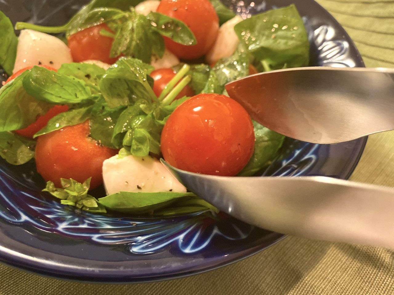 モッツァレラとトマトとバジルの配分が取り分けの際に崩れてしまうだけでなく、モッツァレラチーズも中々取れずに毎回苦戦していました。