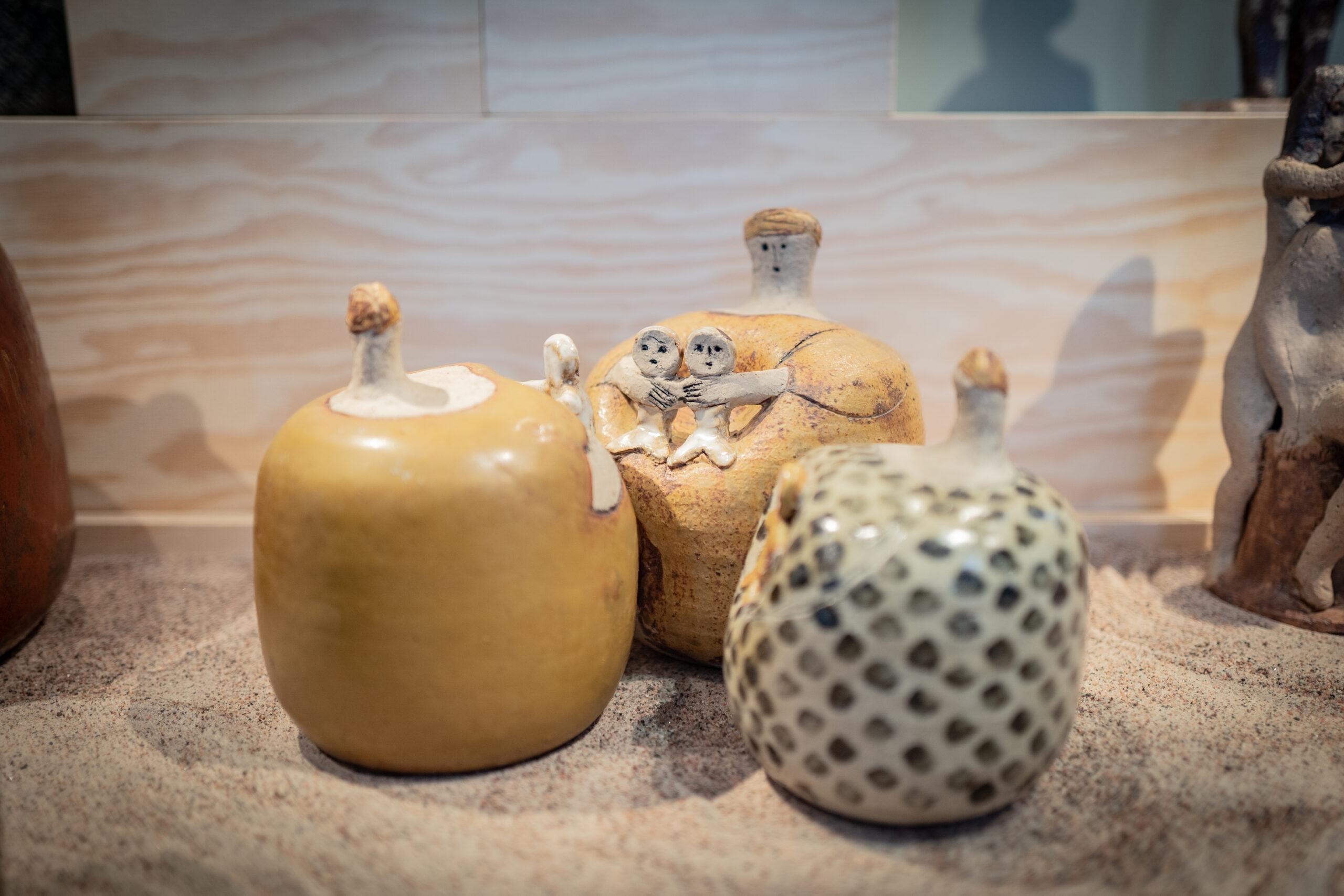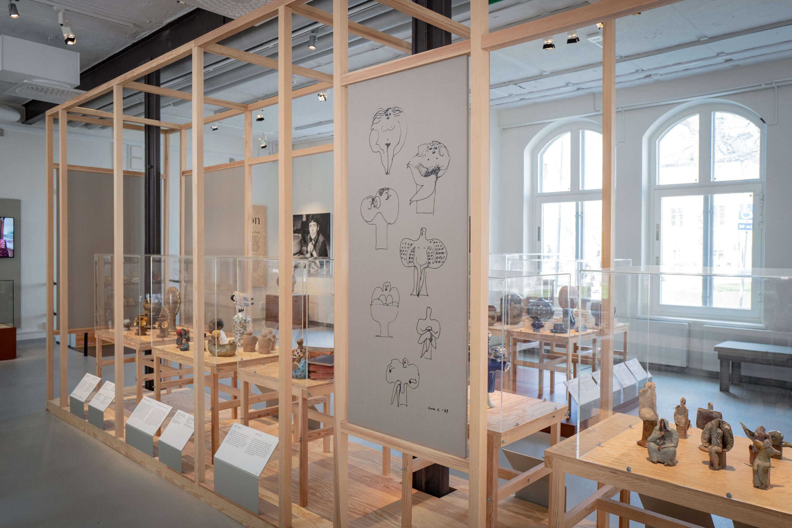 展覧会はリーサがグスタフスベリの磁器工場で働いていた時期(1954〜1980年)のものを中心に約200点の作品で構成されています。回顧展ではありますが、時系列ではなくテーマ別に作品が紹介され、彼女のインスピレーションの源や創作において大事にしていたことなどが垣間見られる展示になっていました。