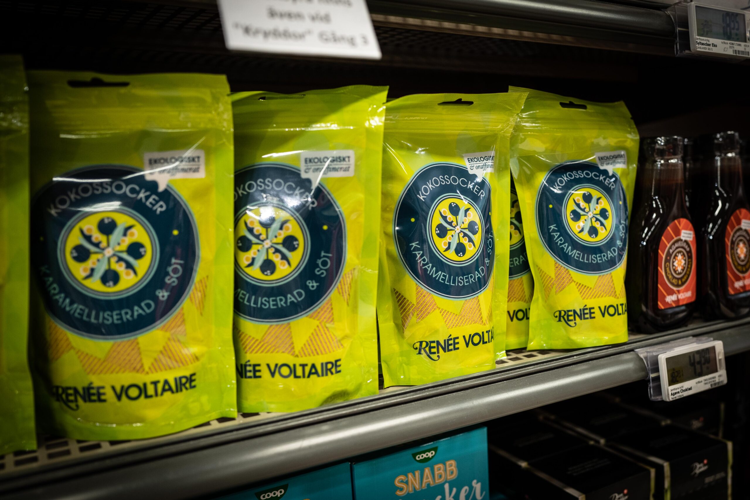 それはさておき、日本にくらべ、スウェーデンではキシリトールを目にする頻度がかなり高い。ガムなどはもちろん、甘味料そのものとしてだ。健康食品店だけでなく、スーパーマーケットや薬局でも見かけ、Björksocker(ビョルクソッケル、白樺砂糖)として親しまれている。砂糖売り場の棚でキシリトールの文字をみつけそこに白樺と書かれているのを見たとき、へえ、そうだったのか、と驚いたのを覚えている(※)。まあそもそもこの国では砂糖の種類(精製度合い)や代用甘味料の選択肢が多い気がする。これを書くに当たって近所のスーパーマーケットに行ってみたところ、糖質系甘味料ではココナッツシュガー、メープルシロップ、アガベシロップ、ナツメシロップ、ざくろシロップ、ソルビトールなどなど。非糖質系でステビア、さらに人工甘味料を入れたらまた数種類あった。