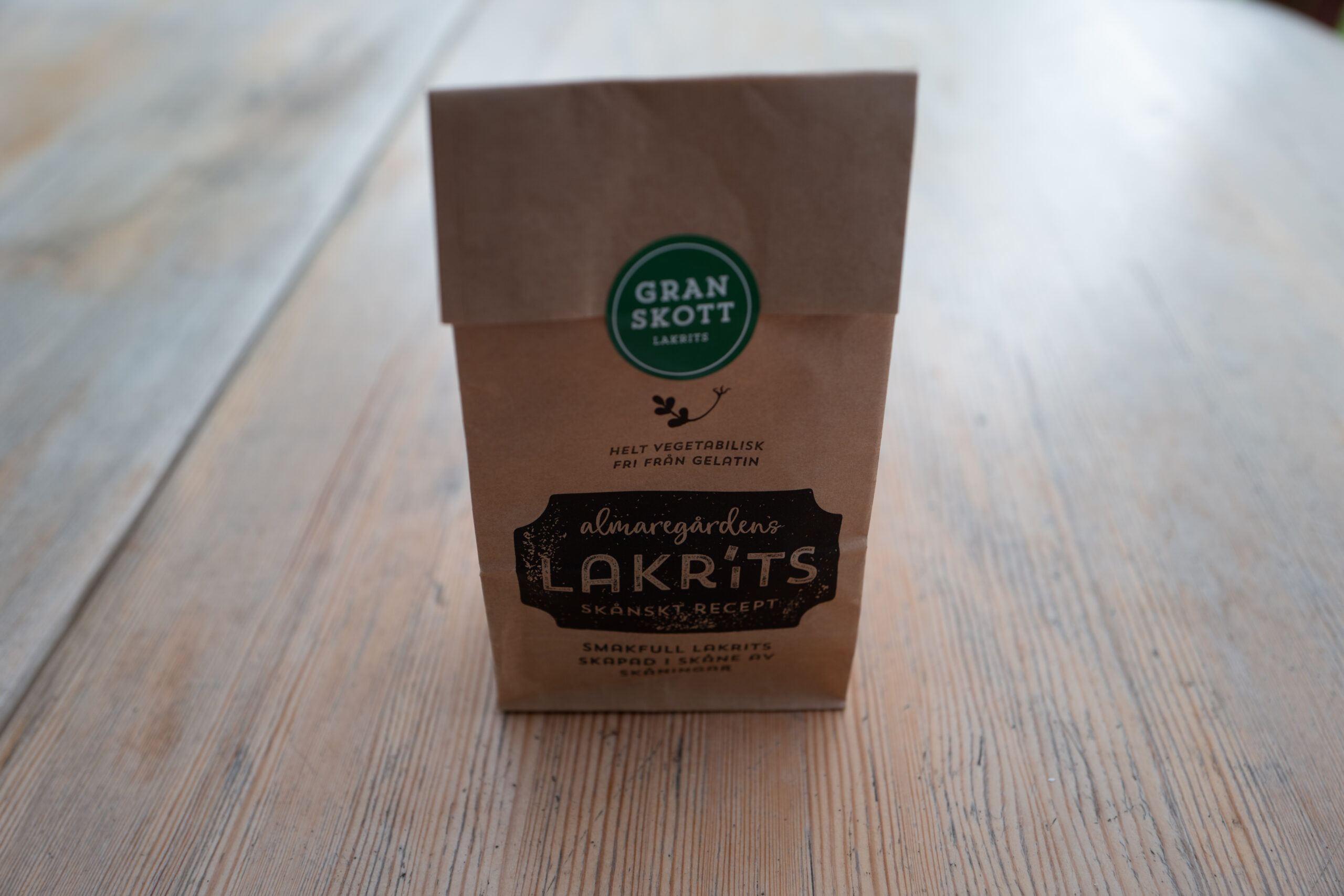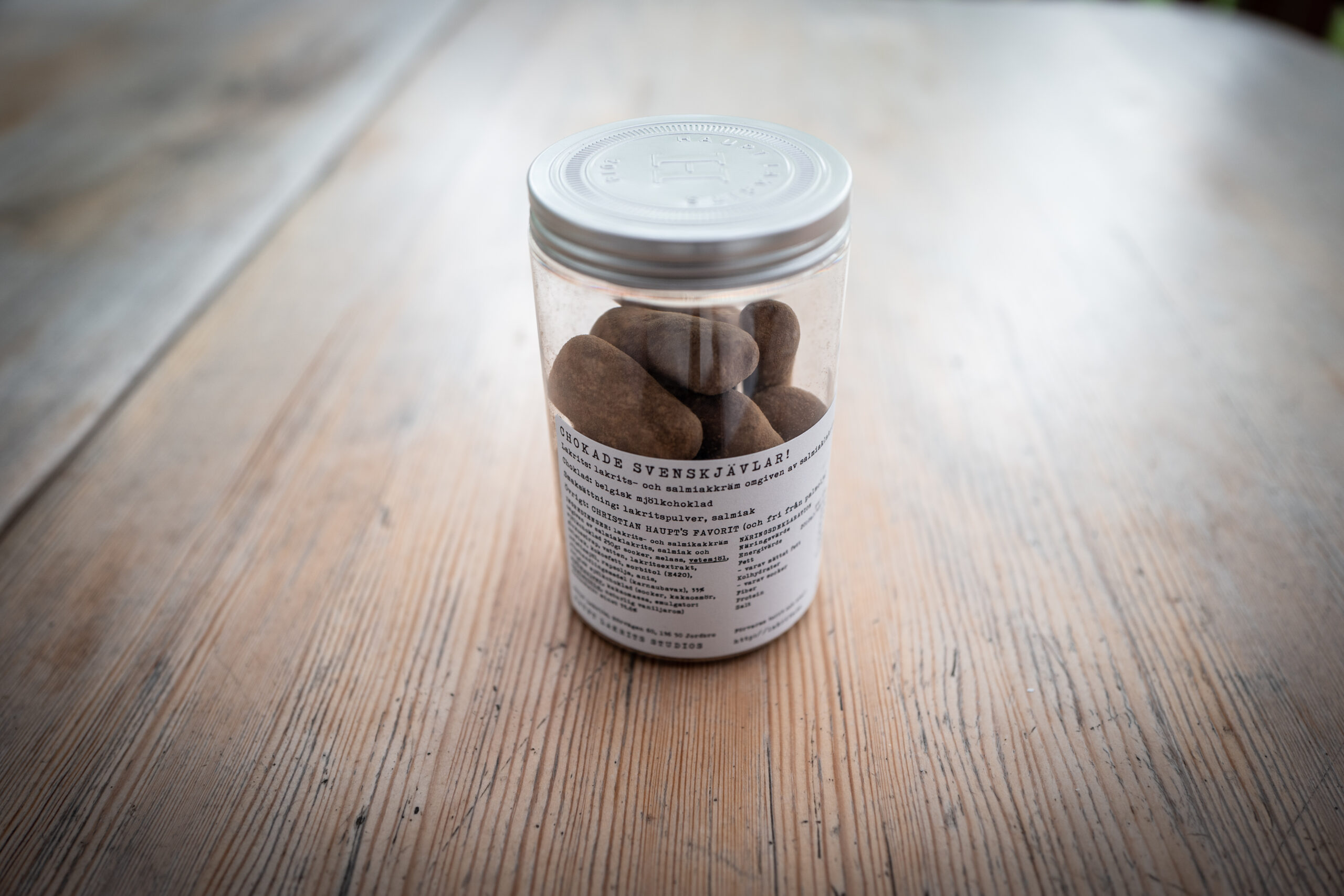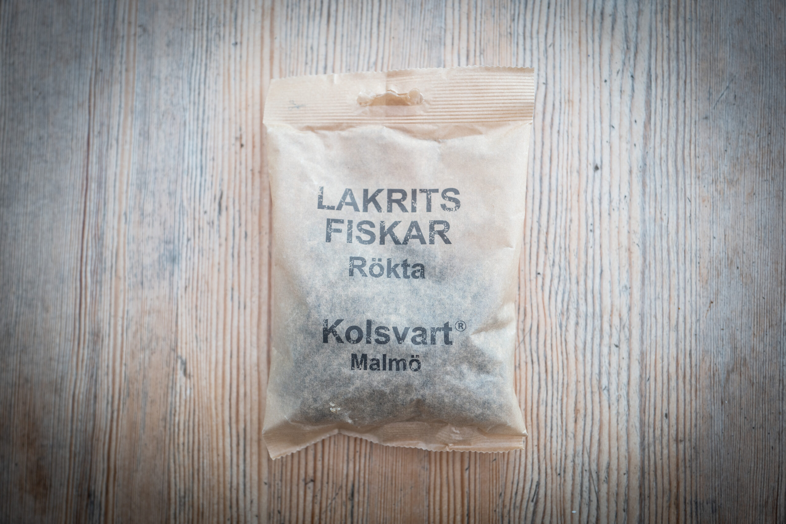 一つ目は僕も以前から大好きなスモーク味のラクリッツ。マルメのメーカー「Kolsvart」の人気商品です。塩みは薄めでラクリッツ本来の甘味と鼻から抜けるスモーキーな香りのバランスが最高。ラクリッツの味に慣れていない人に嫌厭されがちなのが、ラクリッツのもつ特有のアンモニア臭ですが、この商品はスモーク味によって、あまり気にならない感じに仕上がっています。一般的なラクリッツ菓子からするとだいぶ異端の味付けですが、僕は逆に入門編としてもおすすめです。