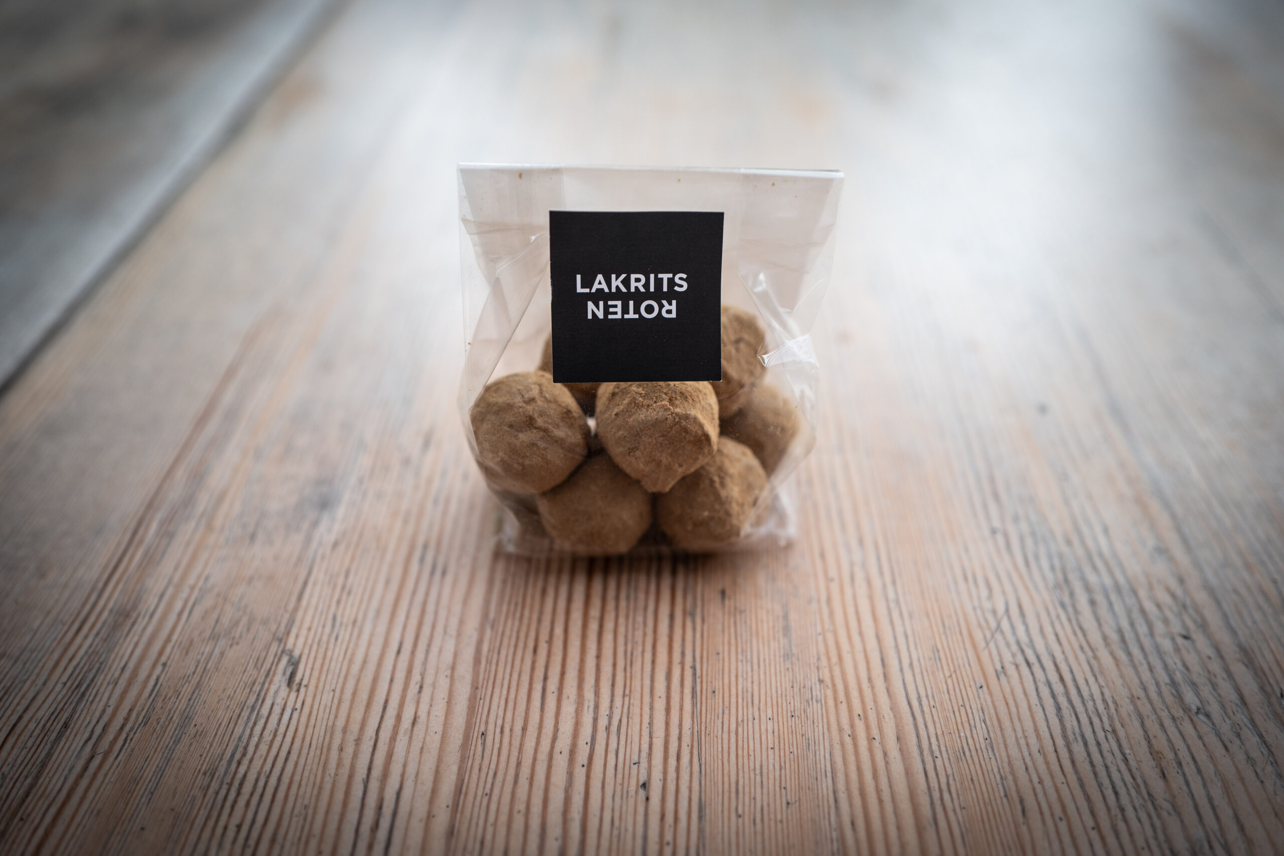 2016年に年間の最優秀ラクリッツ賞を受賞した商品。とろけるバターキャラメルをチョコレートで包み、ラクリスパウダーを振りかけて仕上げています。それぞれのパートが持つ甘さ、苦さ、塩み、香りのコンビネーションが最高(そうそう、いわゆるラクリッツのグミが苦手な人は、ラクリッツパウダーから始めるのが僕のおすすめ。バニラアイスにかけたりすると、いきなり大人のデザートに)。辛口のスパークリングワインと合わせると最高よ、とナタリーさん。高品質の原材料をつかい、一つ一つ手作りでつくられており、プレゼントとしても人気だそうです。