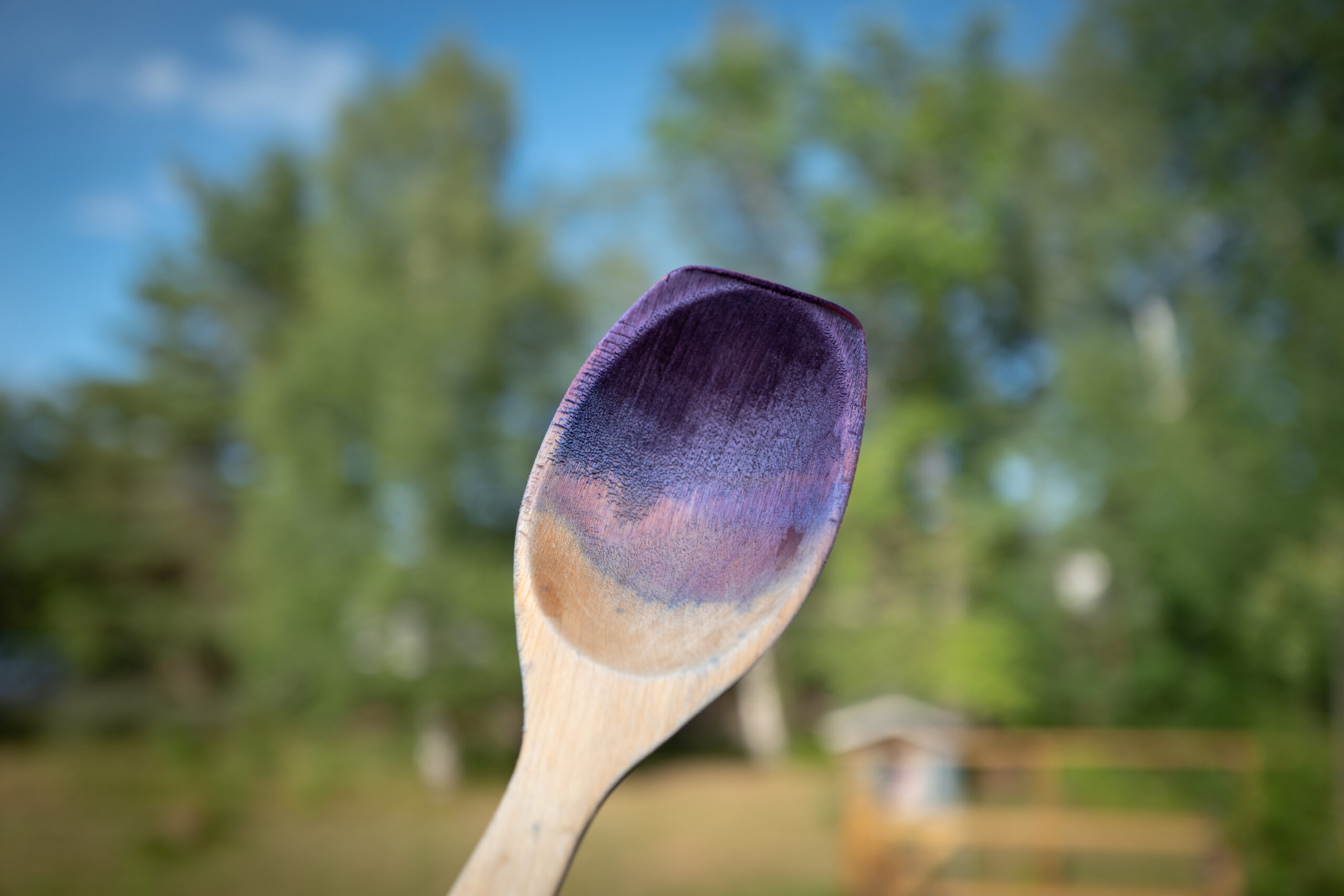 けれど、この木べら、洗いを重ねてこなれてくるととても美しいブルーになってくるんです。ふと、小学校の時ツユクサでつくった色を思い出しました。