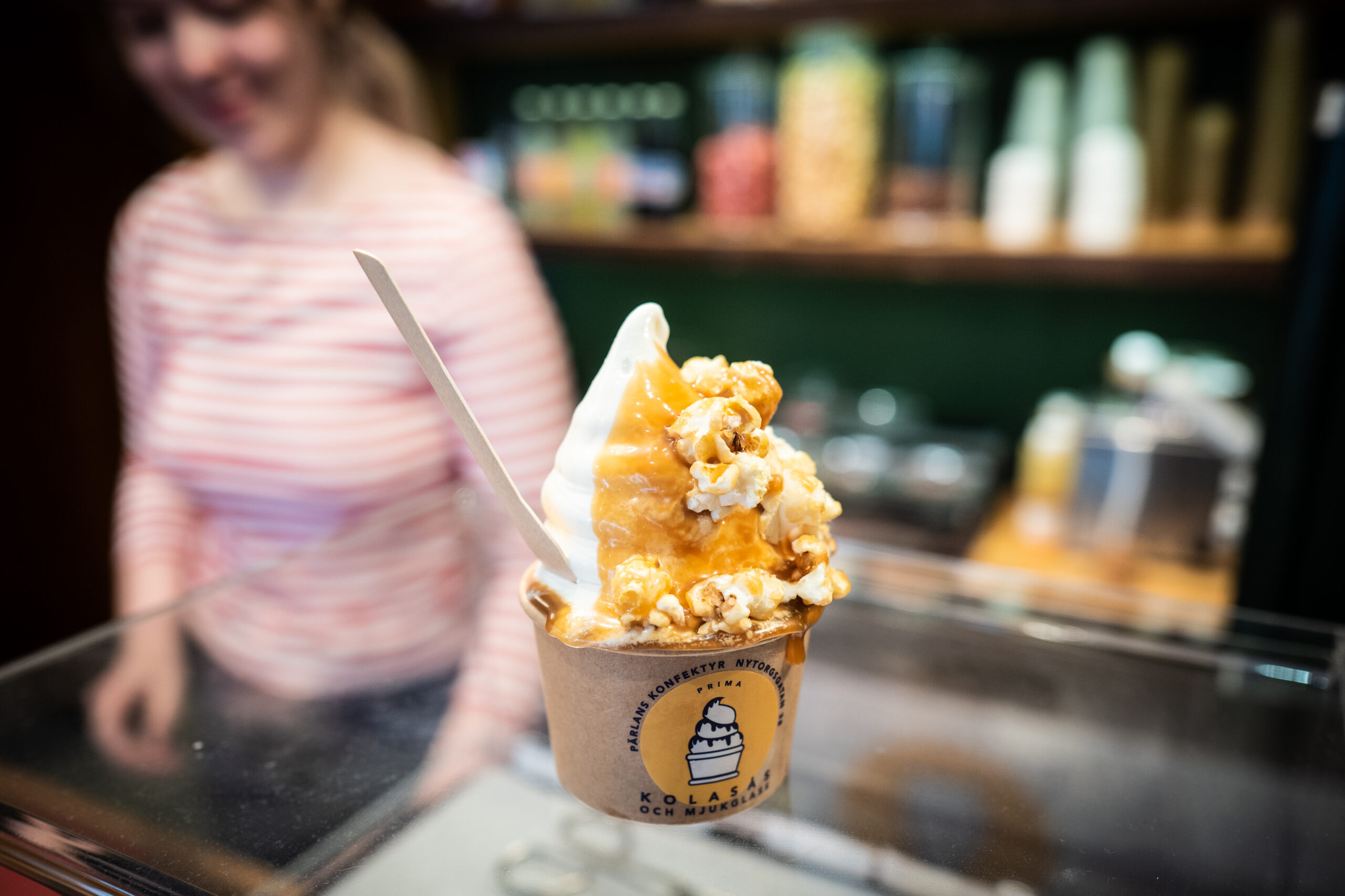 ストックホルムの南地区、Södermalm(セーデルマルム)に大人気のKola(ここでは以下、生キャラメル、とします)の店 Pärlans(ぺーランス)があります。あれは確か2011年ごろでした。お店のエントランスの扉を挟んで、大きなウィンドウが2枚、右側にはレトロな趣のあるショップ、左側には同じくレトロなコスチュームに身を包んだ従業員がせっせとキャラメルを作っている、ファッションブランドのAcne(アクネ)やおしゃれなカフェの並びに、突然そこだけ時間がずれてしまったような、そんなお店があらわれ、道ゆく人を驚かせたのでした。