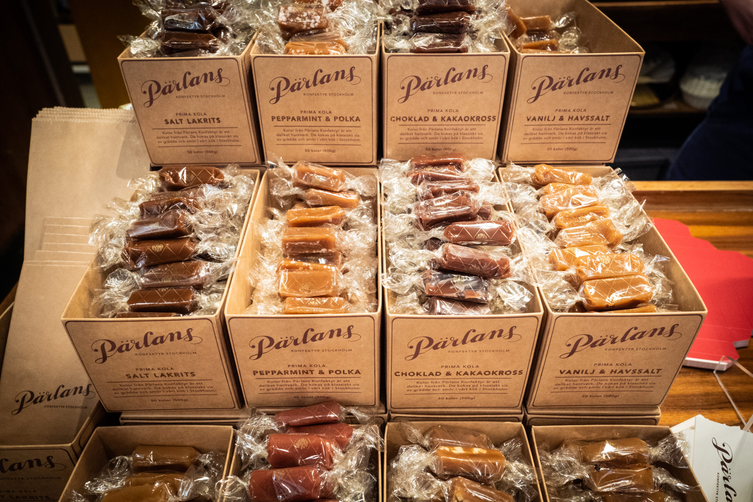 そしてもちろんヴィジュアルだけではありません。ひとつひとつ丁寧に作られた生キャラメルの味は、あっという間にPärlansの名前をストックホルム中に広げました。厳選された素材、伝統的な製法、そして新しい味への挑戦。オープンして10年ほどですが、僕のイメージではすでに老舗というか、ストックホルムの誰もが知る(しかもポジティブな評価をともなった)ブランドな気がしています。