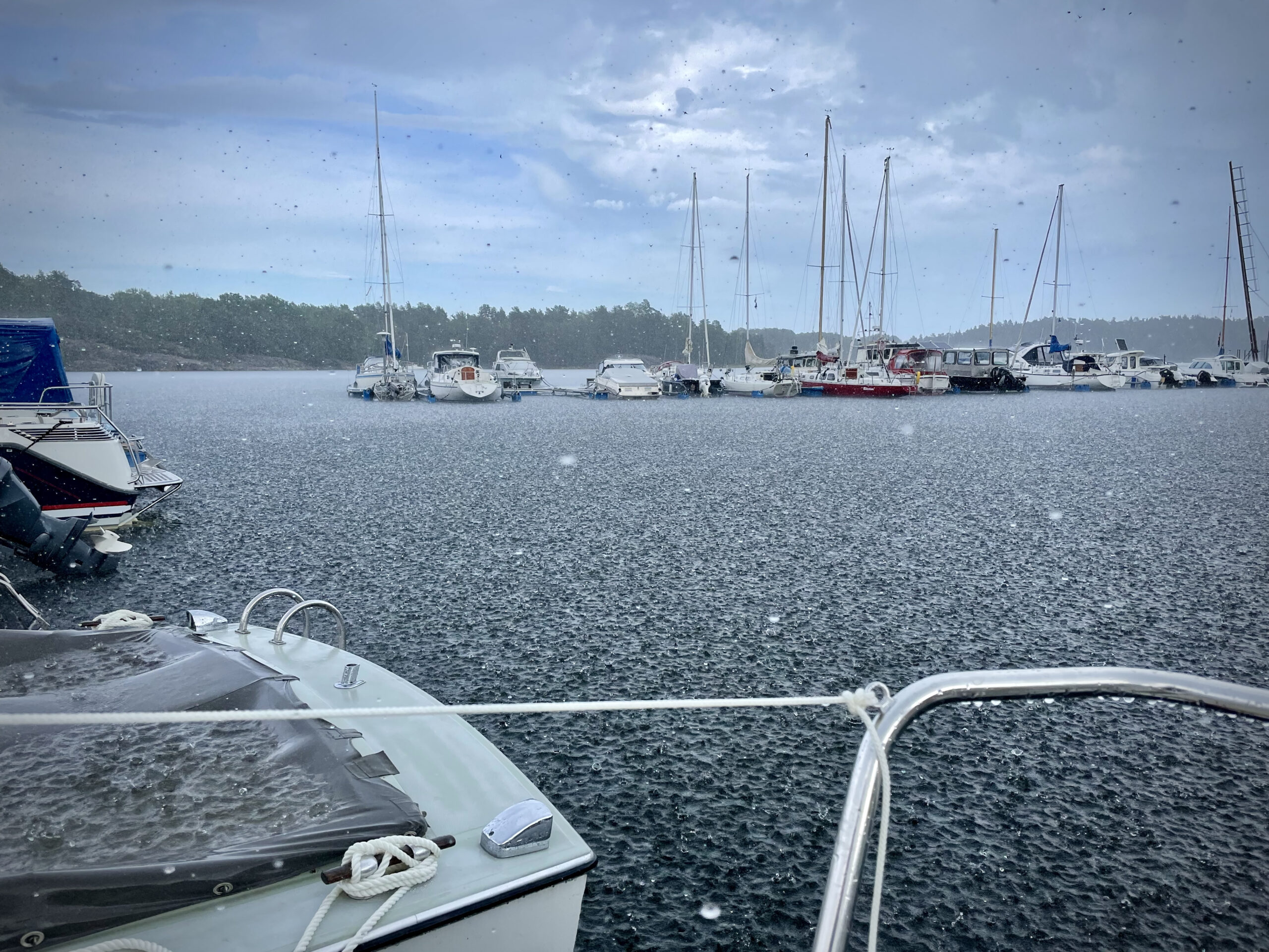 ヨットの作業もこのありさま。一日中雨ということはあまりないけれども、もつかな/もたないかな、という空模様をにらみながらハーバーにいき、降ってきた後も、すぐ止むかな/止まないかな、と耐えている間にずぶ濡れに。こうした雨のひとつひとつが水温を下げ、気温を下げ、樹々の葉を黄色にし、空気の香りを夏ではない何か(言うまい)にしていくのです。