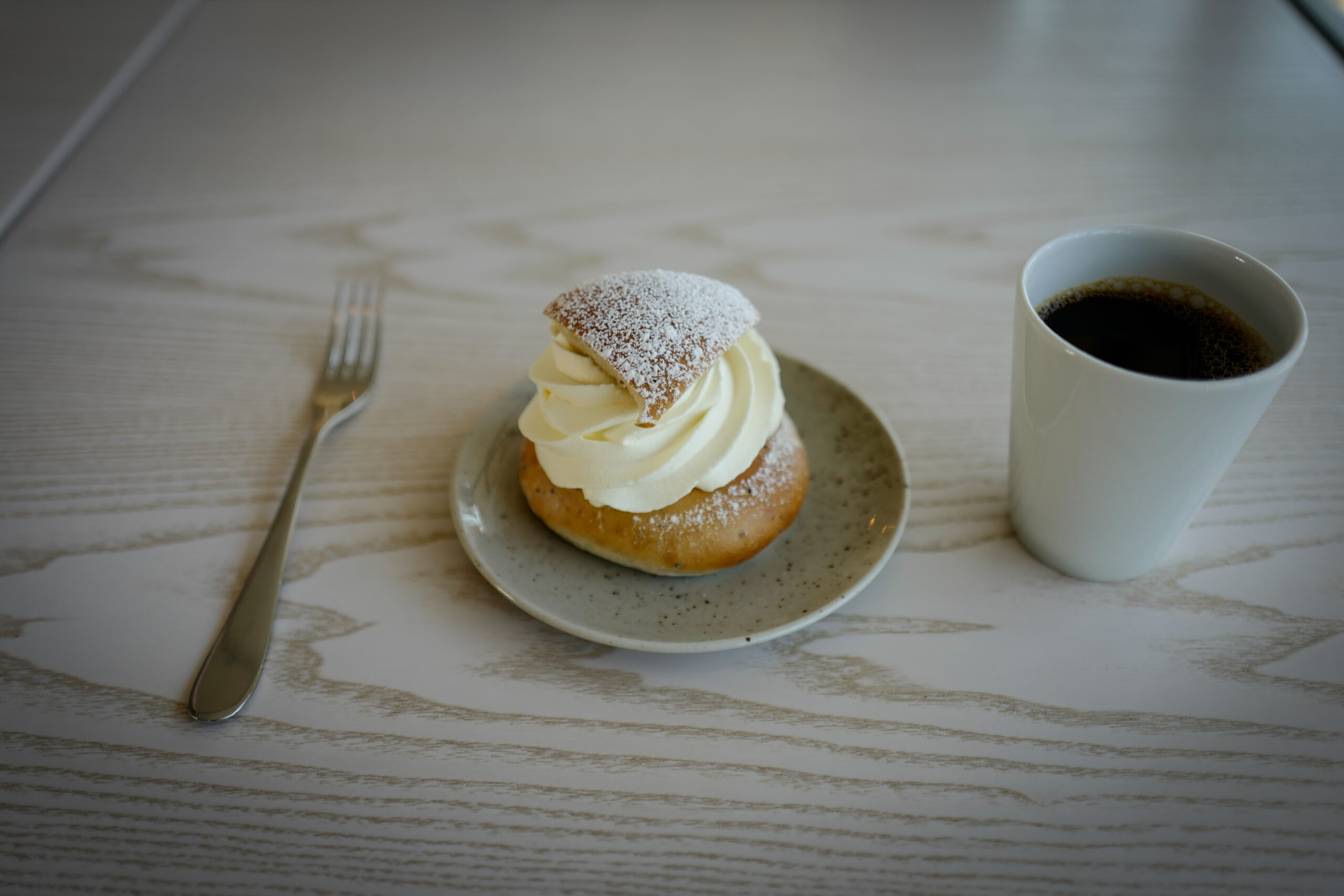 スウェーデンに来たばかりの時、僕らはこの菓子パン風情のケーキ(?)を、変わったところで初めて口にしました。それは、スウェーデンにきた理由のひとつだったグスタフスベリ製陶所、そこに向かう青い474番のバスの中。バスの始発駅、スルッセン(Slussen)のターミナルは当時、高架下にあり、発着を知らせる電光掲示板のもとには安売りパンの出店がでていました。プラスチックの資材ケースに積まれたパンの袋。コッペパンのようなものが5個で150円とか、そういう感じの店。そして、どういうわけか僕らは乗り込む直前にセムラ2個入りの箱を手にしたのです。はっきりとは覚えていないのですが、その大雑把なかたまりがセムラという名前であること、スウェーデンではとてもポピュラーなものだということ、ぐらいは知っていたようです(バスの中で食べるには適さない、ことを知らなかったのは確実ですが)。結論から言うと、最初の出会いは最悪(ありふれた恋愛ドラマのような)。頬張るには適さない大きさ、こぼれ落ちる粉砂糖、揺れる車内。くわえて慣れない生クリーム(こっちの生クリームは全く甘くないことが多い)。安いセムラだったからなのかわかりませんが、食べ切ることもできず、その日一日、胸焼けと車酔いが混ざったような気分のまま、グスタフスベリの街を散策したのを覚えています。