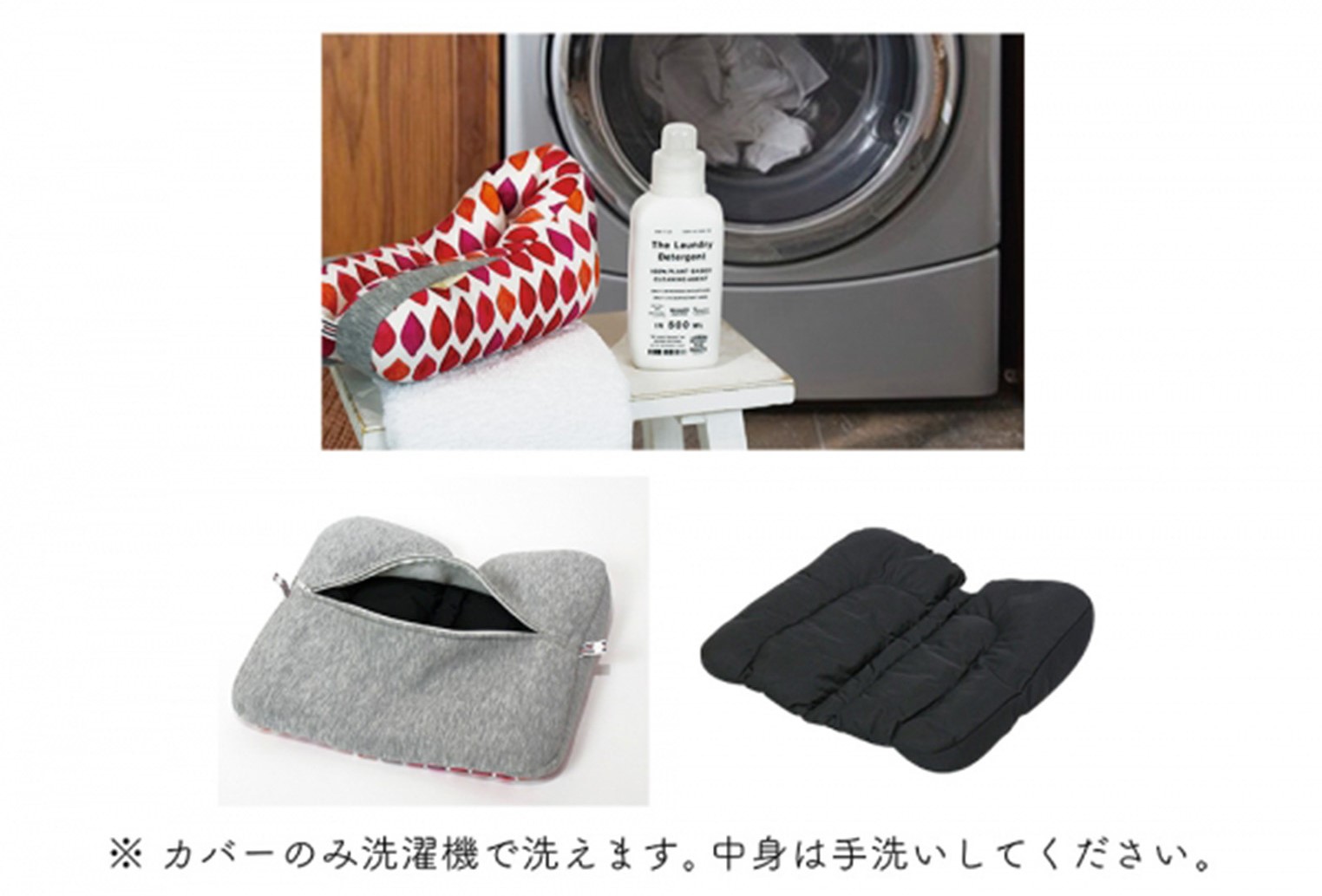 使わないときには折りたたむことができ、スナップボタン付きだから折りたたんだ状態で固定可能。カバーは洗濯機、中身は手洗いで洗え、清潔に使い続けられるのもうれしいポイントです。
