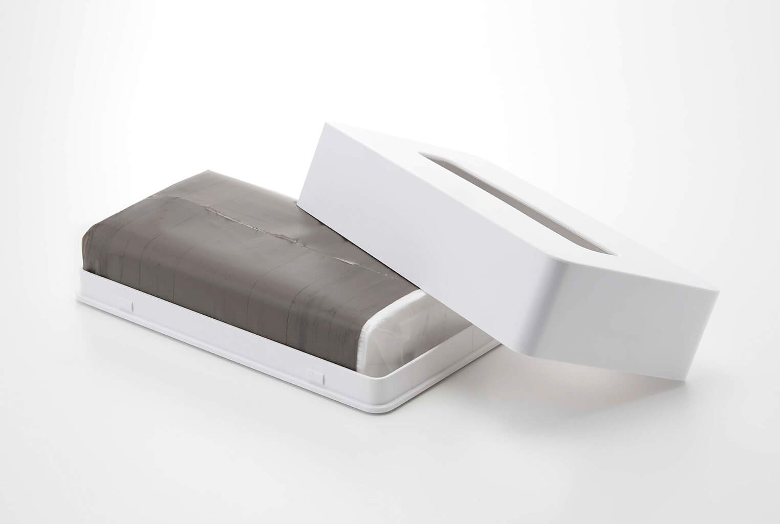 シンプルながら技あり。両側から使えるティッシュケース
